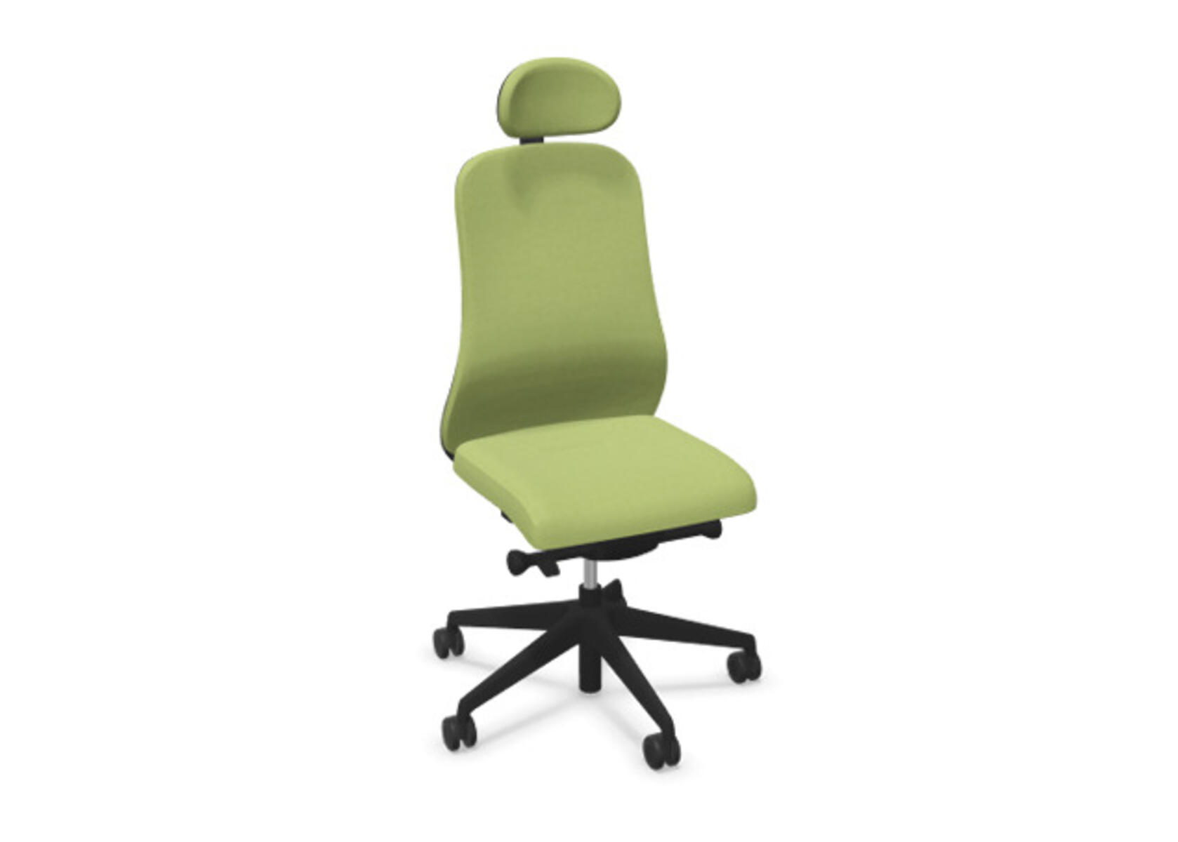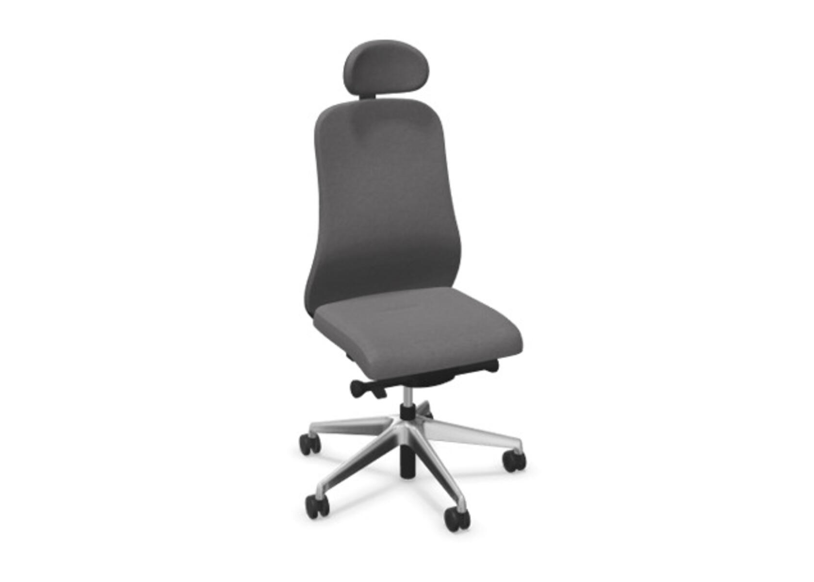 En moderne og ergonomisk kontorstol med delpolstret ryg, avanceret synkronmekanisme og justerbar sædedybde, designet til at give støtte ved aktiv siddestilling gennem hele arbejdsdagen. Polstret med polyesterstof. Den synkroniserede bevægelse mellem ryg og sæde giver en aktiv og behagelig siddestilling. Ryglænet har en hældning på 23° synkroniseret med sædets 10°. Ryglænet kan låses i 5 positioner for individuel tilpasning, og modstanden justeres nemt med et drejehåndtag i 7 trin. Ryglænet er ikke højdejusterbart. Sædedybden kan justeres 60 mm i 7 låsepositioner. Stolen har desuden Anti-Shock-funktion, som forhindrer ryglænet i at slå frem, når vippen låses op. Polstret nakkestøtte, justerbar: dybde 20 mm, vinkel 70° og højde 100 mm. Vælg mellem kryds i sort polyamid eller poleret aluminium samt selvbremsende hjul til bløde eller hårde gulve. Som tilvalg kan der vælges lændestøtte, manuelt højdejusterbar (55 mm). Armlæn i 2D, 3D eller 4D købes separat.
