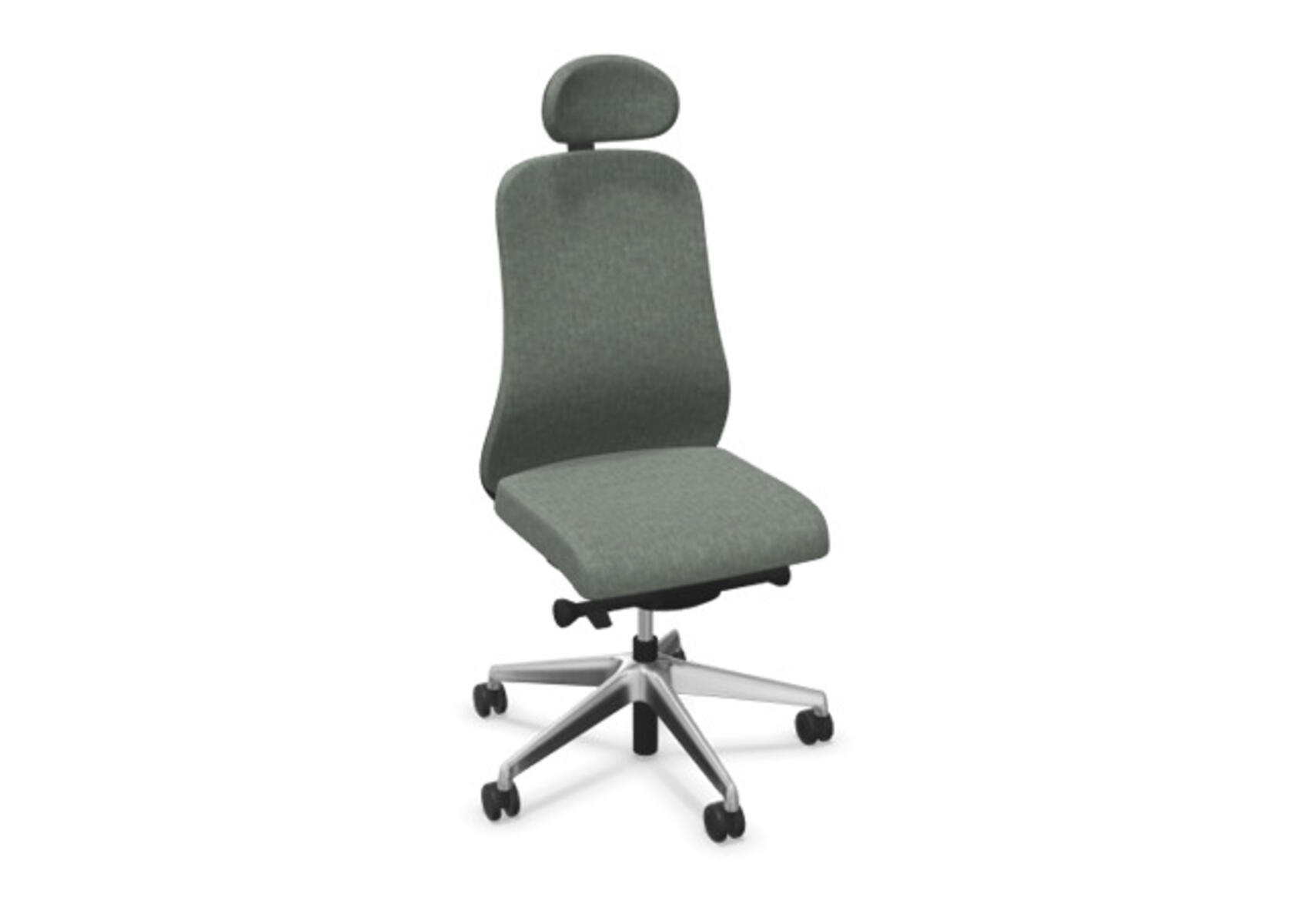 En moderne og ergonomisk kontorstol med halvpolstret ryg og synkronmekanisme samt justerbar sædedybde, designet til at give støtte ved aktiv siddestilling gennem hele arbejdsdagen. Polstret i polyesterstof. Den synkroniserede bevægelse mellem ryg og sæde giver en aktiv og behagelig siddestilling; ryglænet har en hældning på 21° synkroniseret med sædets 7°. Ryglænet kan låses i 4 positioner og er udstyret med en funktion, der automatisk tilpasser modstanden efter brugerens vægt og giver mulighed for yderligere finjustering i 3 trin. Ryglænet kan ikke højdejusteres. Sædedybden kan justeres 60 mm og låses i 7 positioner. Stolen har Anti-Shock-funktion, som forhindrer ryglænet i at slå frem, når låsen frigives. Polstret nakkestøtte, justerbar i dybden 20 mm, i vinklen 70° og i højden 100 mm. Vælg mellem kryds i lysgrå polyamid eller poleret aluminium samt selvbremsende hjul til både hårde og bløde gulve. Som tilvalg findes lændestøtte, manuelt højdejusterbar 55 mm. Armlæn i 2D, 3D eller 4D købes separat.