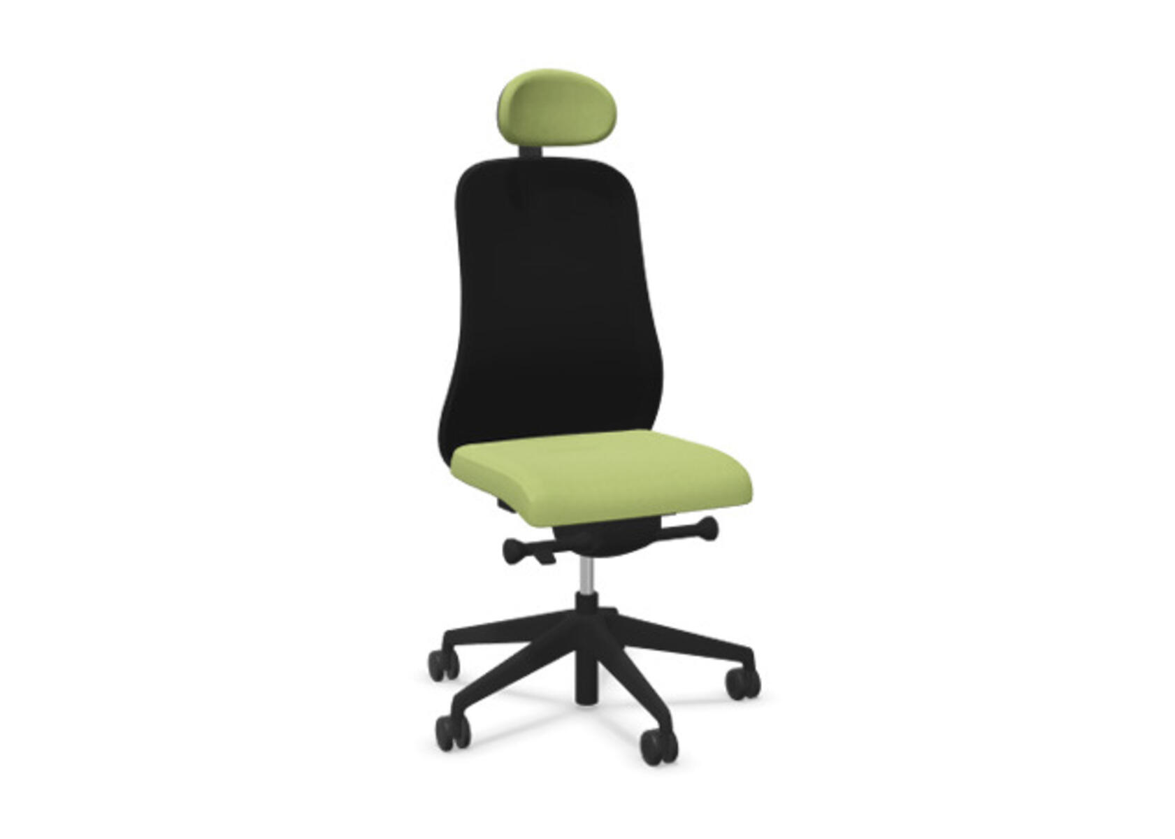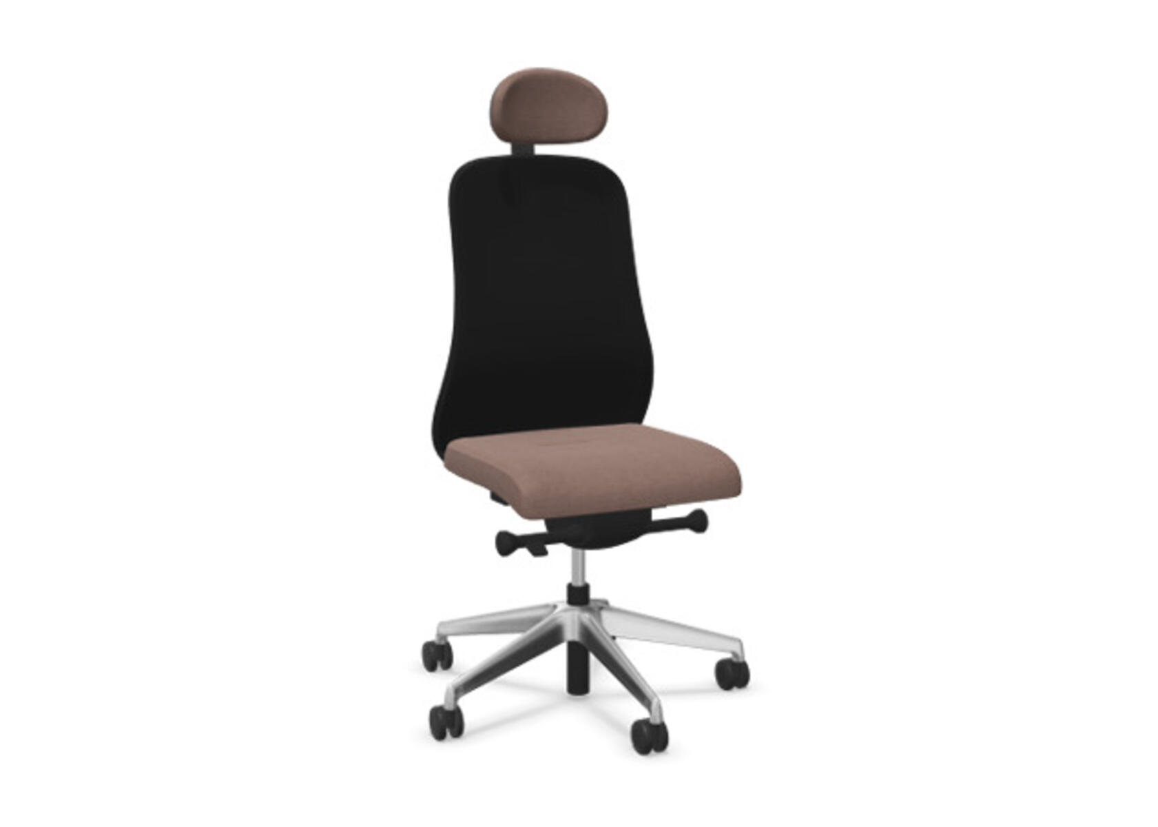 Moderne og ergonomisk kontorstol med halvpolstret ryg og synkronmekanisme samt sædedybdejustering, udviklet til at give støtte ved aktiv siddestilling under hele arbejdsdagen. Polstret med polyesterstof. Den synkroniserede vinkel mellem ryglæn og sæde muliggør en aktiv og behagelig siddestilling. Ryglænsvinkel 21° synkroniseret med sædevinkel 7°. Ryglænet kan låses i 4 forskellige positioner og er udstyret med en funktion, som automatisk justerer ryglænets modstand efter brugerens vægt og giver mulighed for yderligere justering i 3 trin. Ryglænet er ikke højdejusterbart. Sædedybden kan justeres inden for et interval på 60 mm, 7 låsepositioner. Stolen har også Anti-Shock-funktion, som forhindrer, at ryglænet slår tilbage, når vippefunktionen låses op. Polstret nakkestøtte, justerbar inden for intervallerne: dybde 20 mm, vinkel 70° og højde 100 mm. Vælg mellem fodkryds i sort polyamid eller poleret aluminium samt selvbremsende hjul til bløde eller hårde gulve. Som tilvalg fås også lændestøtte, manuelt højdejusterbar (55 mm). Armlæn 2D, 3D eller 4D sælges separat.