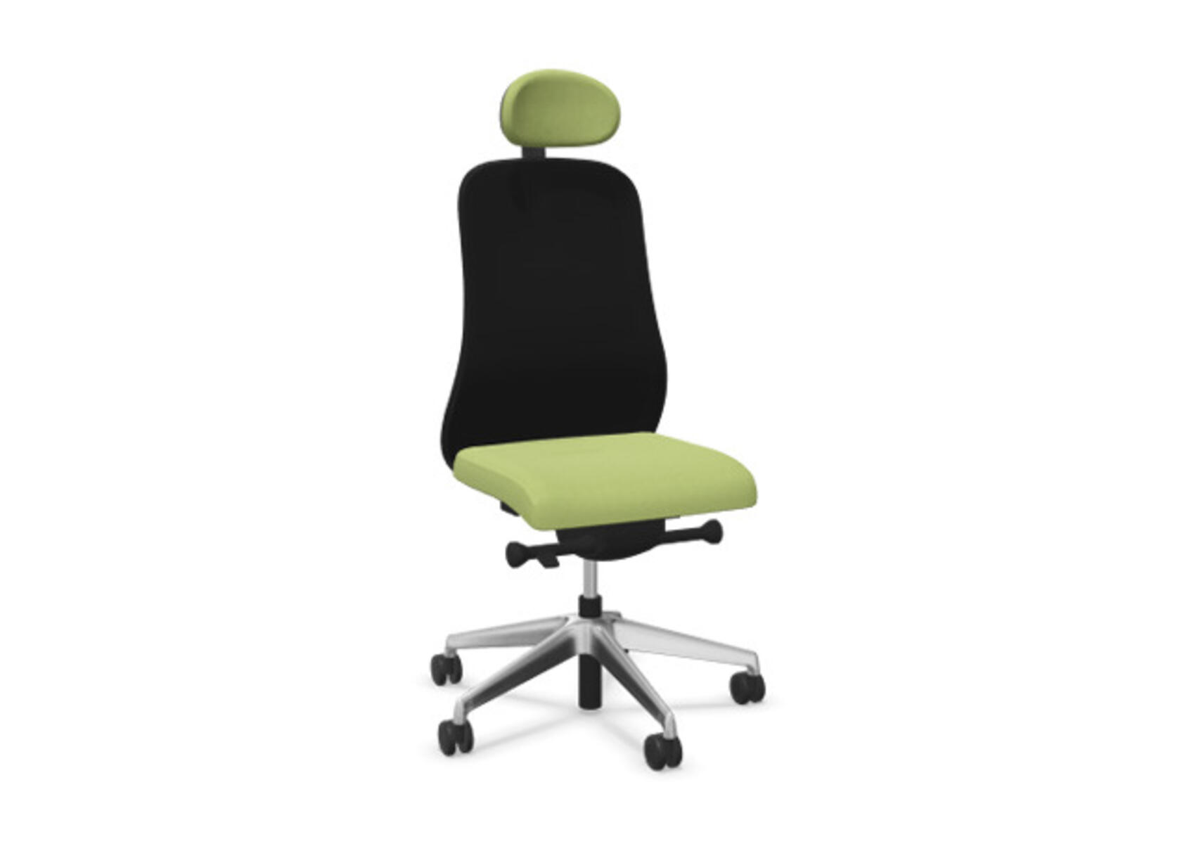 En moderne og ergonomisk kontorstol med halvpolstret ryg og synkronmekanisme samt justerbar sædedybde, designet til at give støtte ved aktiv siddestilling gennem hele arbejdsdagen. Polstret i polyesterstof. Den synkroniserede bevægelse mellem ryg og sæde giver en aktiv og behagelig siddestilling; ryglænet har en hældning på 21° synkroniseret med sædets 7°. Ryglænet kan låses i 4 positioner og er udstyret med en funktion, der automatisk tilpasser modstanden efter brugerens vægt og giver mulighed for yderligere finjustering i 3 trin. Ryglænet kan ikke højdejusteres. Sædedybden kan justeres 60 mm og låses i 7 positioner. Stolen har Anti-Shock-funktion, som forhindrer ryglænet i at slå frem, når låsen frigives. Polstret nakkestøtte, justerbar i dybden 20 mm, i vinklen 70° og i højden 100 mm. Vælg mellem kryds i lysgrå polyamid eller poleret aluminium samt selvbremsende hjul til både hårde og bløde gulve. Som tilvalg findes lændestøtte, manuelt højdejusterbar 55 mm. Armlæn i 2D, 3D eller 4D købes separat.