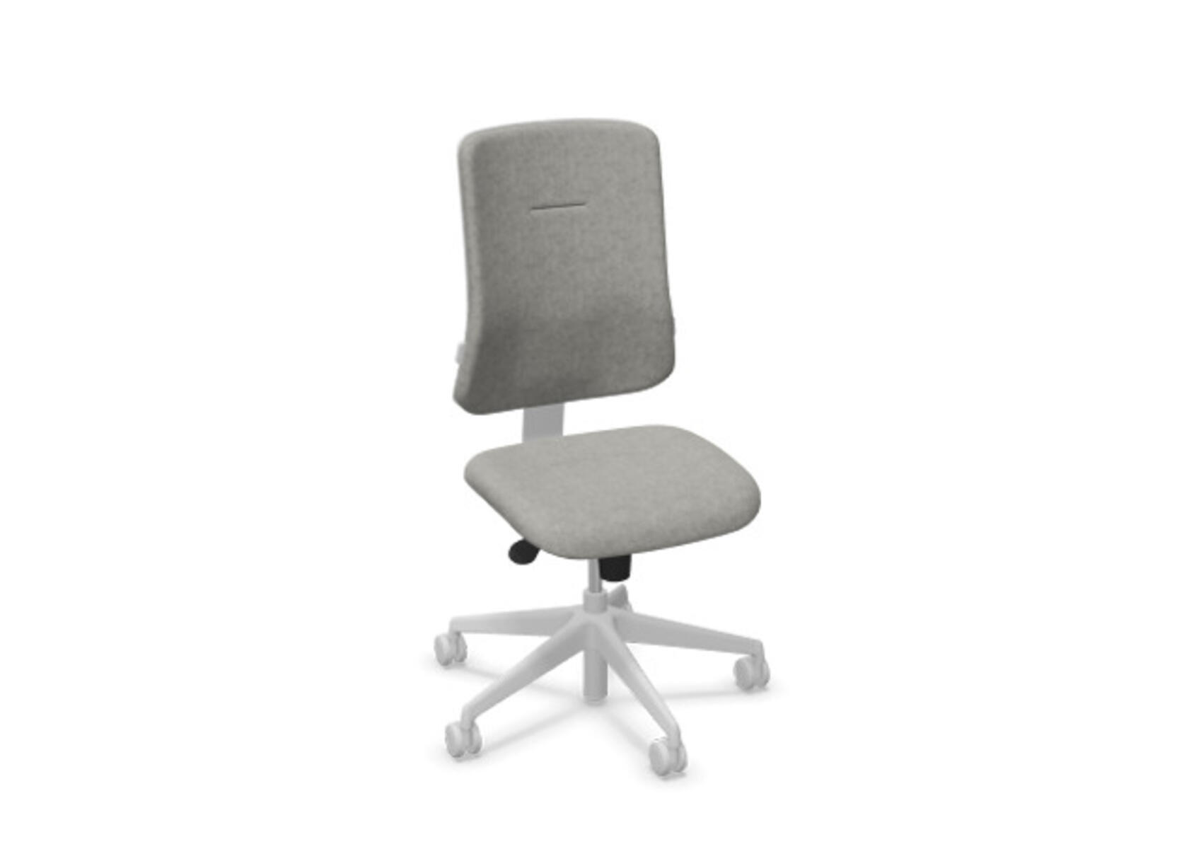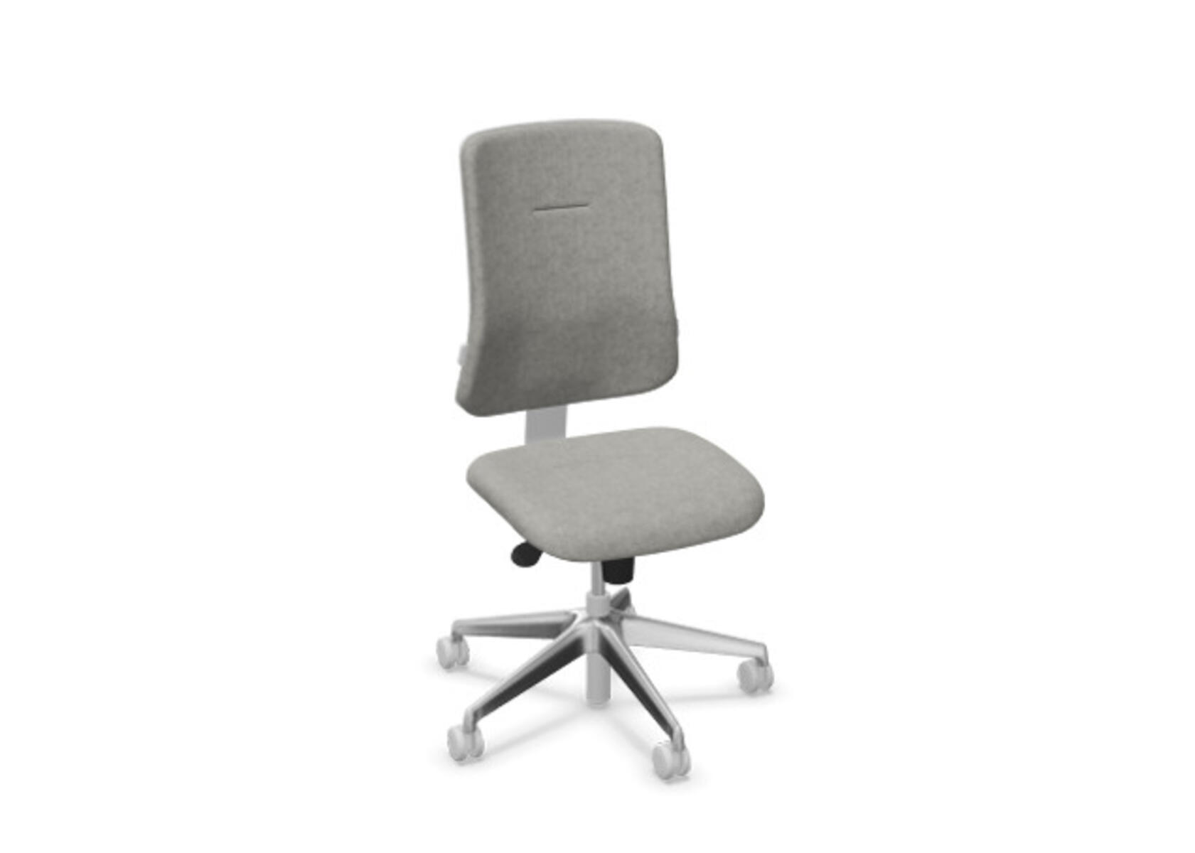 En ergonomisk kontorstol med halvpolstret ryg og synkronmekanisme, designet til at give støtte ved aktivt siddende arbejde hele dagen. Betrukket med uldstof. Den synkroniserede bevægelse mellem ryg og sæde giver en aktiv og behagelig siddestilling. Ryglænets hældningsvinkel er 20° synkroniseret med sædets 11°. Ryglænet kan låses i 5 positioner, og modstanden justeres nemt med et drejehjul. Ryglænet kan højdejusteres 70 mm med 5 låsepositioner. Sædedybden kan justeres 50 mm. Stolen har Anti-Shock funktion, som forhindrer ryglænet i at slå tilbage, når hældningen frigøres. Vælg mellem kryds i lysegrå polyamid eller poleret aluminium samt selvbremsende hjul til både bløde og hårde gulve. Som tilvalg findes justerbart lændestøtte (15 mm i dybde og 20 mm i højde). Armlæn 2D, 3D eller 4D sælges separat.