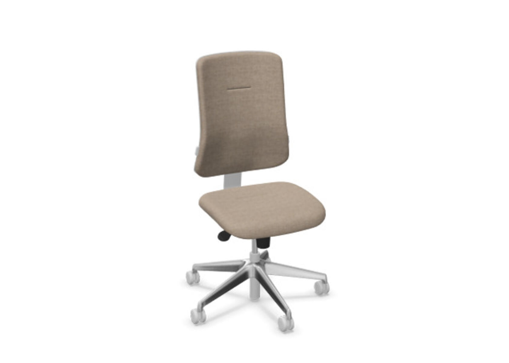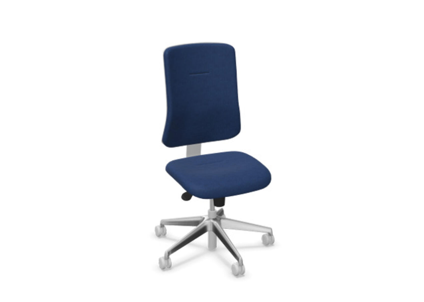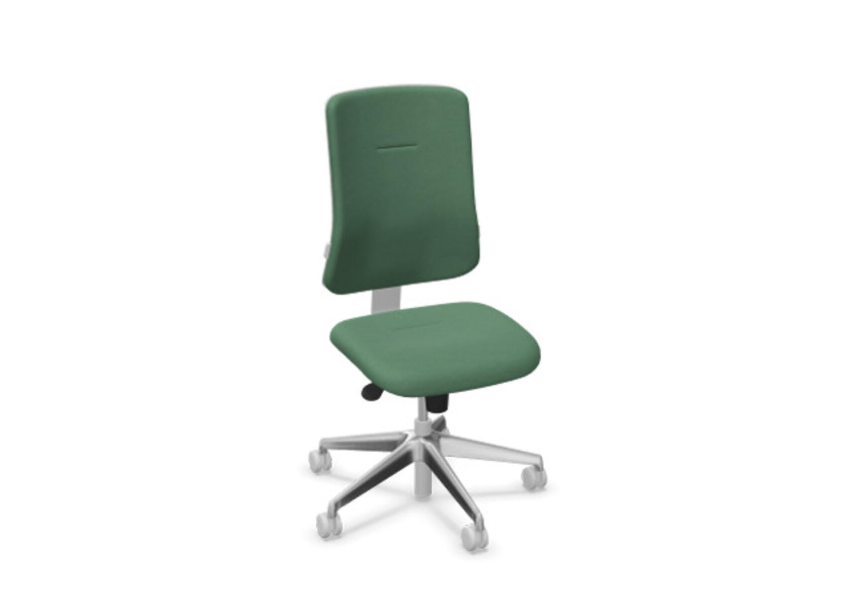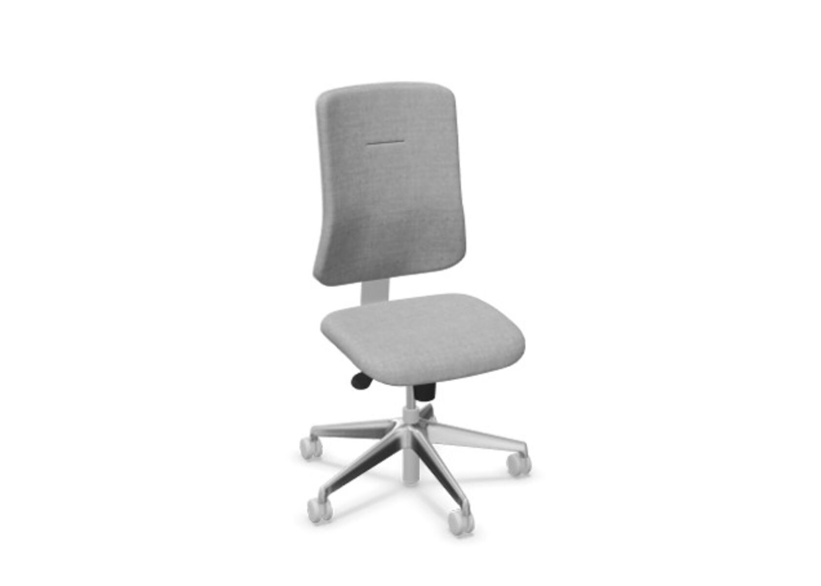 Ergonomisk kontorstol med halvpolstret ryg og synkronmekanisme, udviklet til at give støtte ved aktiv siddestilling gennem hele arbejdsdagen. Betrukket med polyestertøj. Den synkroniserede bevægelse mellem ryg og sæde sikrer en aktiv og komfortabel siddeoplevelse. Ryglænets hældning er 20° synkroniseret med sædets 11°. Ryglænet kan låses i 5 positioner og modstanden justeres nemt via et drejegreb. Ryggen kan højdejusteres 70 mm i 5 trin. Sædedybden kan justeres 50 mm. Stolen er udstyret med Anti-Shock, som forhindrer at ryggen smækker tilbage, når låsen frigøres. Vælg mellem kryds i lysgrå polyamid eller poleret aluminium samt selvbremsende hjul til bløde eller hårde gulve. Som tilvalg findes justerbart lændestøtte (15 mm i dybde og 20 mm i højde). Armlæn 2D, 3D eller 4D sælges separat.