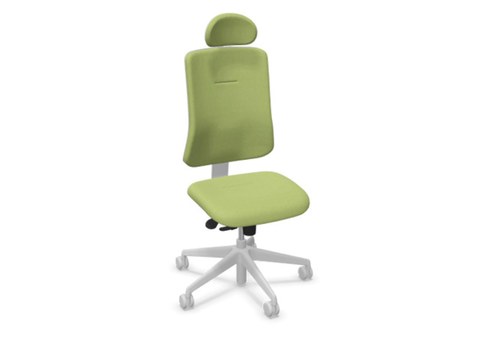 Ergonomisk kontorstol med halvpolstret ryg og synkronmekanisme, udviklet til at give støtte ved aktiv siddestilling gennem hele arbejdsdagen. Betrukket med polyestertøj. Den synkroniserede bevægelse mellem ryg og sæde sikrer en aktiv og komfortabel siddeoplevelse. Ryglænets hældning er 20° synkroniseret med sædets 11°. Ryglænet kan låses i 5 positioner og modstanden justeres nemt via et drejegreb. Ryggen kan højdejusteres 70 mm i 5 trin. Polstret nakkestøtte, justerbar i dybde (20 mm), vinkel (70°) og højde (100 mm). Sædedybden kan justeres 50 mm. Stolen er udstyret med Anti-Shock, som forhindrer at ryggen smækker tilbage, når låsen frigøres. Vælg mellem kryds i sort polyamid eller poleret aluminium samt selvbremsende hjul til bløde eller hårde gulve. Som tilvalg findes justerbart lændestøtte (15 mm i dybde og 20 mm i højde). Armlæn 2D, 3D eller 4D sælges separat.