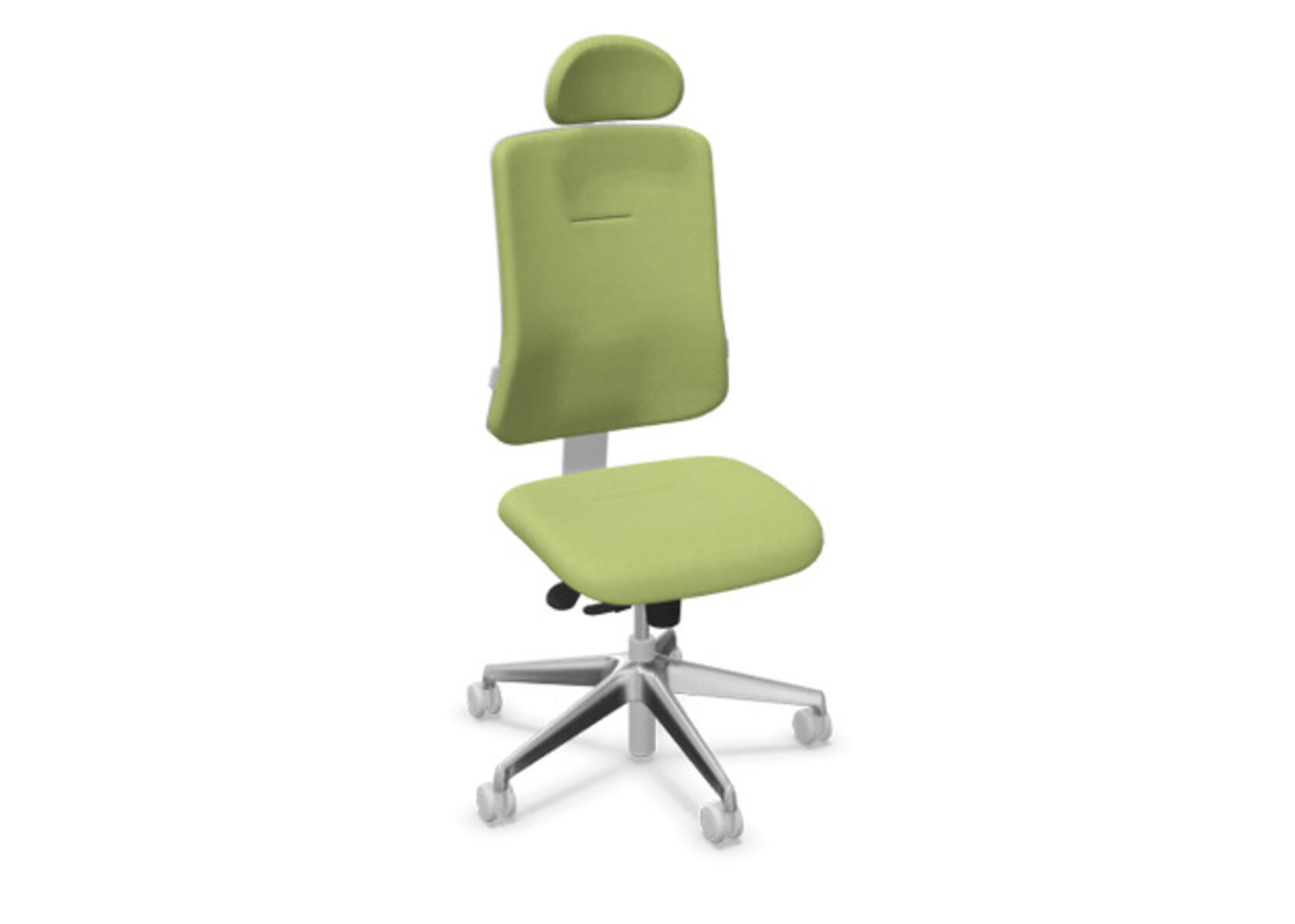 Ergonomisk kontorstol med halvpolstret ryg og synkronmekanisme samt justerbart sædedybde, designet til at give støtte ved aktiv siddestilling hele arbejdsdagen. Betrukket med polyesterstof. Den synkroniserede bevægelse mellem ryglæn og sæde giver en aktiv og behagelig siddestilling. Ryglænets hældningsvinkel er 20° og synkroniseret med sædets hældningsvinkel på 11°. Ryglænet kan låses i 5 positioner, og modstanden justeres enkelt via et drejegreb. Ryglænet kan højdejusteres 70 mm med 5 låsepositioner. Polstret nakkestøtte, justerbar i dybde (20 mm), vinkel (70°) og højde (100 mm). Sædedybden kan justeres 50 mm. Stolen har Anti-Shock-funktion, som forhindrer ryglænet i at slå tilbage, når hældningen låses op. Vælg mellem kryds i lysegrå polyamid eller poleret aluminium samt selvbremsende hjul til enten bløde eller hårde gulve. Som tilvalg findes justerbart lændestøtte (15 mm i dybde og 20 mm i højde). Armlæn 2D, 3D eller 4D sælges separat.