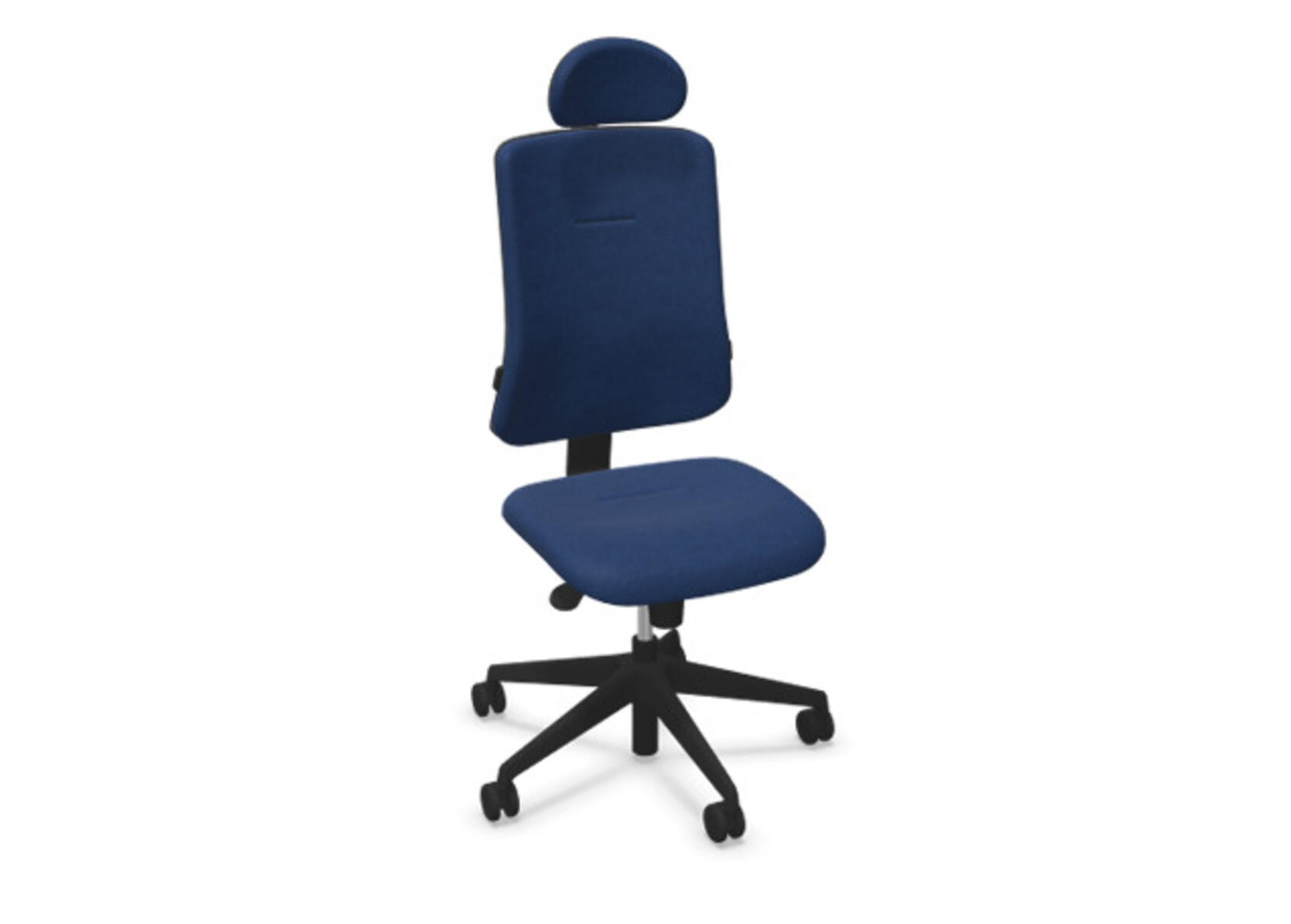 Ergonomisk kontorstol med halvpolstret ryg og synkronmekanisme, udviklet til at give støtte ved aktiv siddestilling gennem hele arbejdsdagen. Betrukket med polyestertøj. Den synkroniserede bevægelse mellem ryg og sæde sikrer en aktiv og komfortabel siddeoplevelse. Ryglænets hældning er 20° synkroniseret med sædets 11°. Ryglænet kan låses i 5 positioner og modstanden justeres nemt via et drejegreb. Ryggen kan højdejusteres 70 mm i 5 trin. Sædedybden kan justeres 50 mm. Stolen er udstyret med Anti-Shock, som forhindrer at ryggen smækker tilbage, når låsen frigøres. Vælg mellem kryds i sort polyamid eller poleret aluminium samt selvbremsende hjul til bløde eller hårde gulve. Som tilvalg findes justerbart lændestøtte (15 mm i dybde og 20 mm i højde). Armlæn 2D, 3D eller 4D sælges separat.
