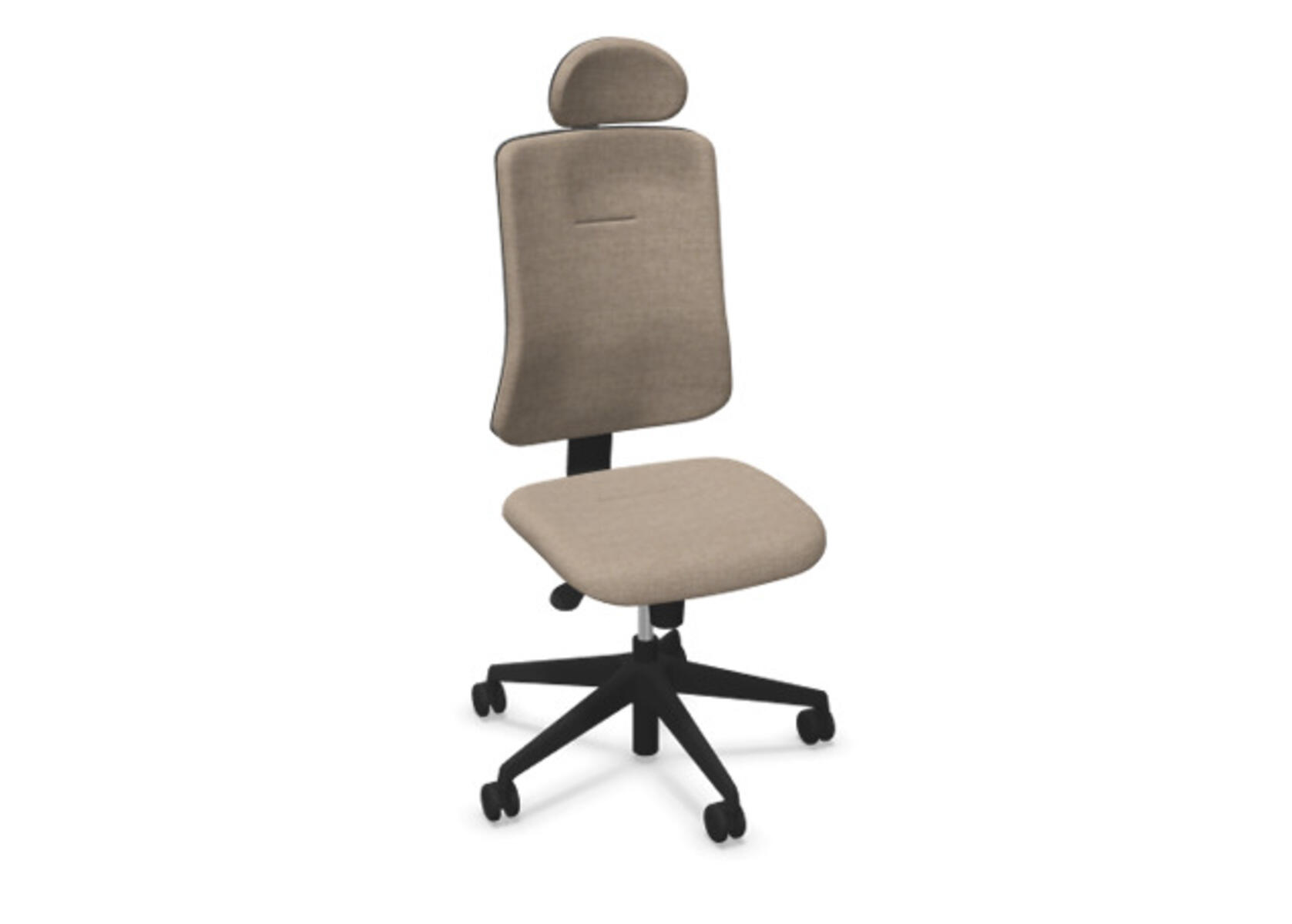 Ergonomisk kontorstol med halvpolstret ryg og synkronmekanisme, designet til at give støtte ved aktiv siddestilling hele arbejdsdagen. Betrukket med uldstof. Den synkroniserede bevægelse mellem ryg og sæde giver en aktiv og behagelig siddestilling. Ryglænets hældningsvinkel er 20° og synkroniseret med sædets hældningsvinkel på 11°. Ryglænet kan låses i 5 positioner og modstanden justeres nemt via et drejegreb. Ryglænet er højdejusterbart inden for 70 mm med 5 låsepositioner.