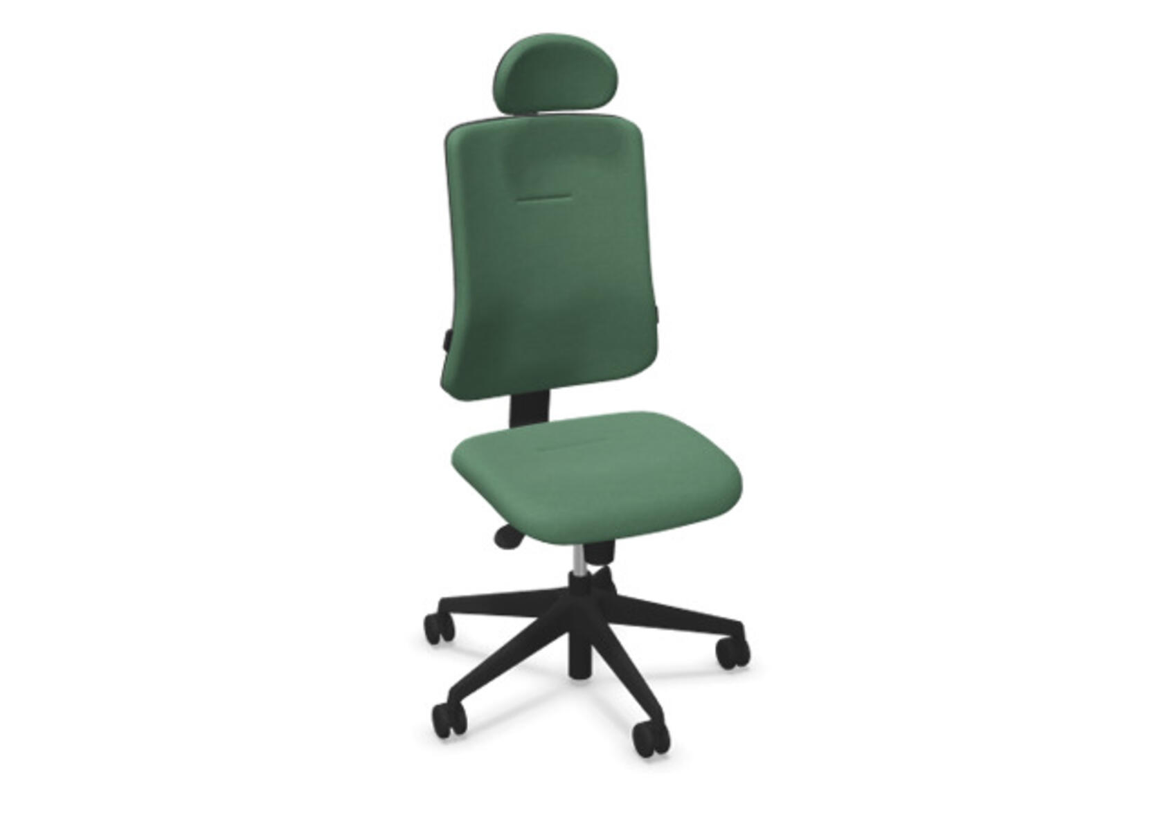 Ergonomisk kontorstol med halvpolstret ryg og synkronmekanisme, udviklet til at give støtte ved aktiv siddestilling gennem hele arbejdsdagen. Betrukket med polyestertøj. Den synkroniserede bevægelse mellem ryg og sæde sikrer en aktiv og komfortabel siddeoplevelse. Ryglænets hældning er 20° synkroniseret med sædets 11°. Ryglænet kan låses i 5 positioner og modstanden justeres nemt via et drejegreb. Ryggen kan højdejusteres 70 mm i 5 trin. Polstret nakkestøtte, justerbar i dybde (20 mm), vinkel (70°) og højde (100 mm). Sædedybden kan justeres 50 mm. Stolen er udstyret med Anti-Shock, som forhindrer at ryggen smækker tilbage, når låsen frigøres. Vælg mellem kryds i sort polyamid eller poleret aluminium samt selvbremsende hjul til bløde eller hårde gulve. Som tilvalg findes justerbart lændestøtte (15 mm i dybde og 20 mm i højde). Armlæn 2D, 3D eller 4D sælges separat.