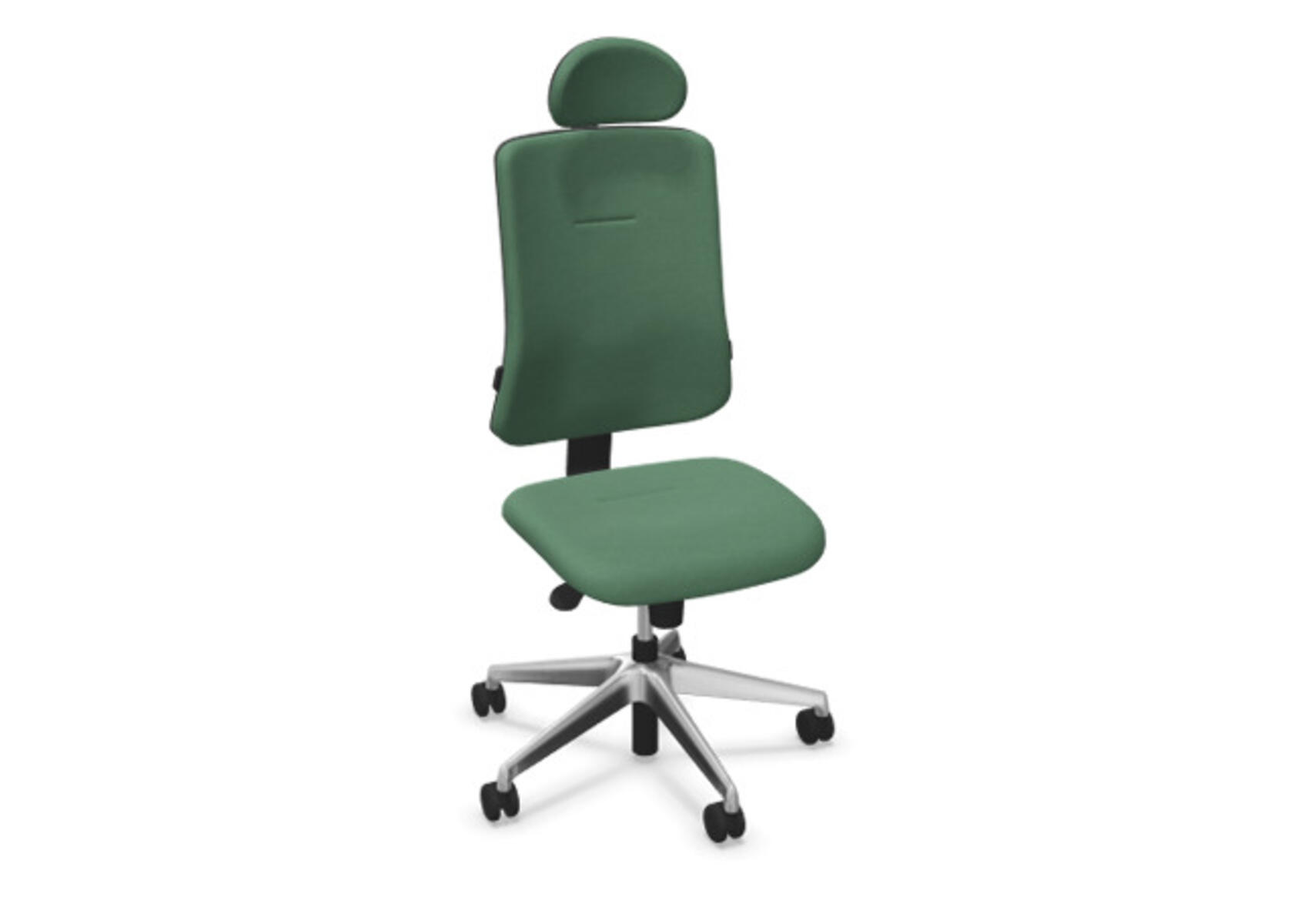 Ergonomisk kontorstol med halvpolstret ryg og synkronmekanisme, udviklet til at give støtte ved aktiv siddestilling gennem hele arbejdsdagen. Betrukket med polyestertøj. Den synkroniserede bevægelse mellem ryg og sæde sikrer en aktiv og komfortabel siddeoplevelse. Ryglænets hældning er 20° synkroniseret med sædets 11°. Ryglænet kan låses i 5 positioner og modstanden justeres nemt via et drejegreb. Ryggen kan højdejusteres 70 mm i 5 trin. Sædedybden kan justeres 50 mm. Stolen er udstyret med Anti-Shock, som forhindrer at ryggen smækker tilbage, når låsen frigøres. Vælg mellem kryds i lysgrå polyamid eller poleret aluminium samt selvbremsende hjul til bløde eller hårde gulve. Som tilvalg findes justerbart lændestøtte (15 mm i dybde og 20 mm i højde). Armlæn 2D, 3D eller 4D sælges separat.