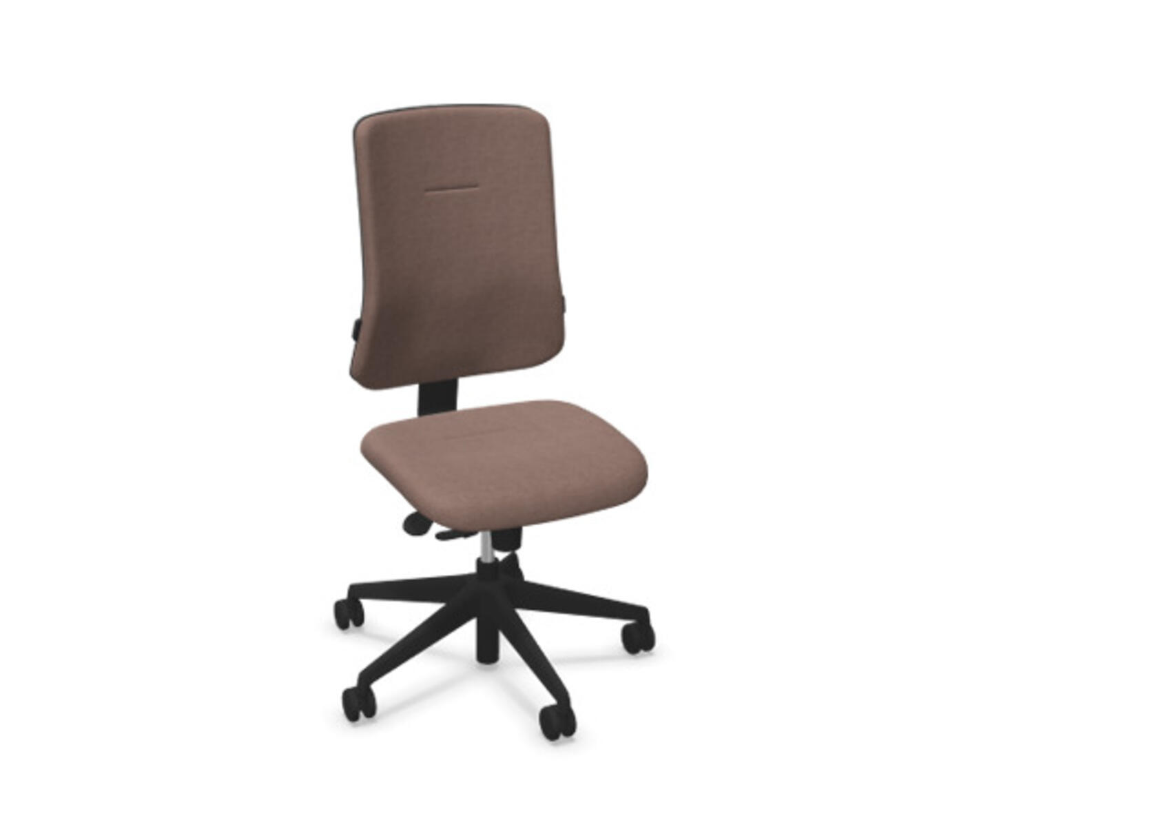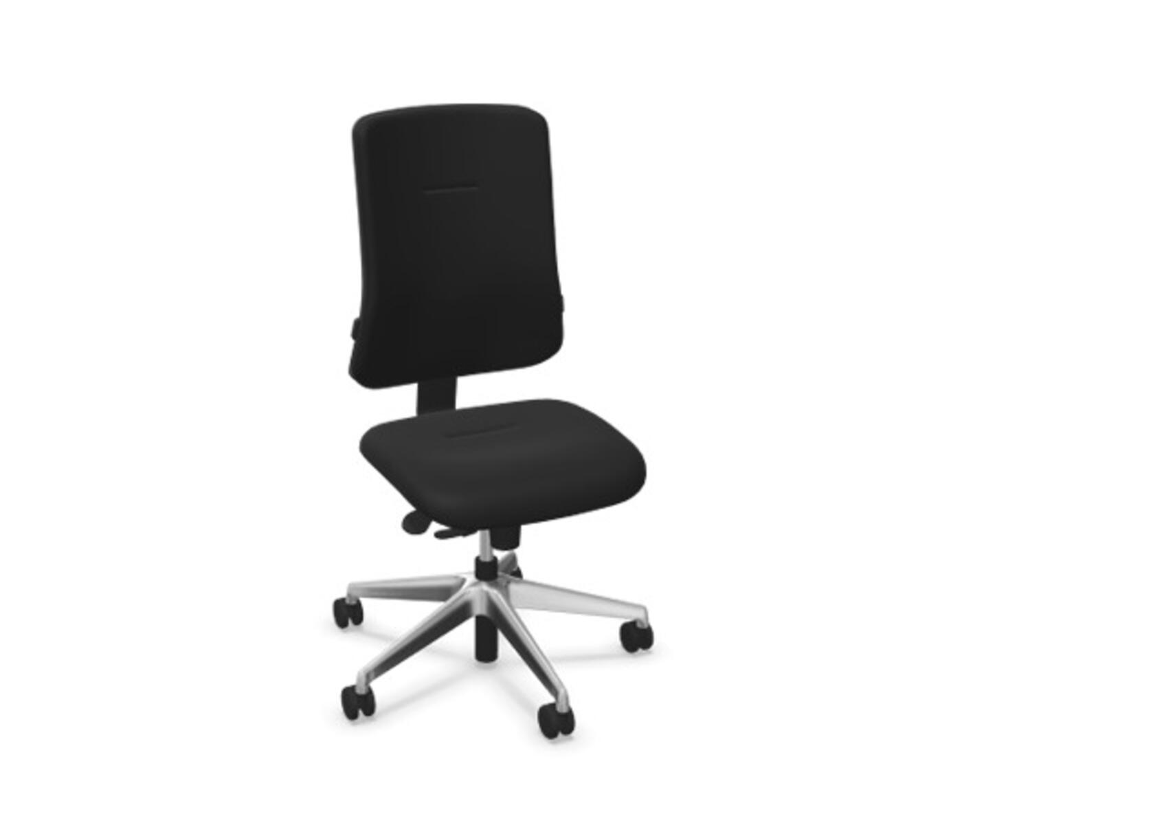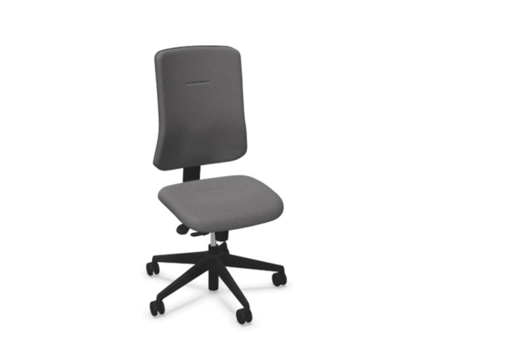Ergonomisk kontorstol med halvpolstret ryg og synkronmekanisme samt justerbart sædedybde, udviklet til at give støtte ved aktiv siddestilling hele arbejdsdagen. Polstret med polyesterstof. Den synkroniserede bevægelse mellem ryg og sæde sikrer en aktiv og komfortabel siddeoplevelse. Rygvinklen er 20° synkroniseret med en sædevinkel på 11°. Ryglænet kan låses i 5 positioner og modstanden justeres nemt via et drejegreb. Ryglænet kan højdejusteres 70 mm med 5 låsbare niveauer. Sædedybden kan justeres 50 mm. Stolen har Anti-Shock-funktion, som forhindrer ryggen i at slå frem, når låsen frigives. Vælg mellem stel i sort polyamid eller poleret alu samt selvbremsende hjul til bløde eller hårde gulve. Tilvalg: justerbart lændestøtte (15 mm dybde, 20 mm højde) samt armlæn i 2D, 3D eller 4D.
