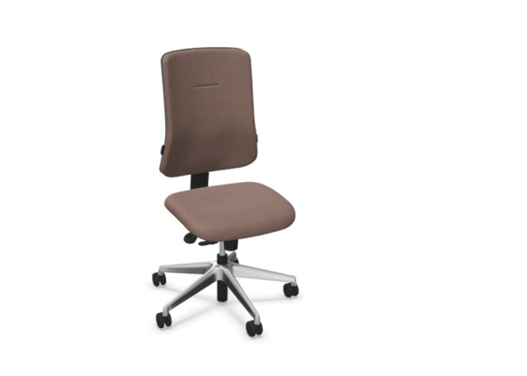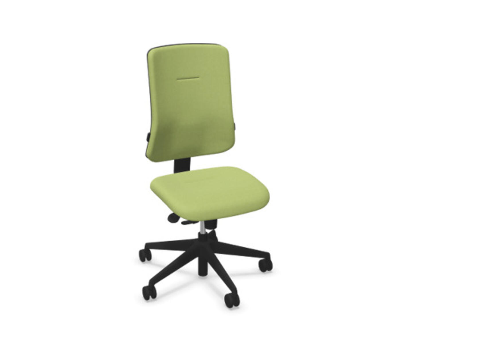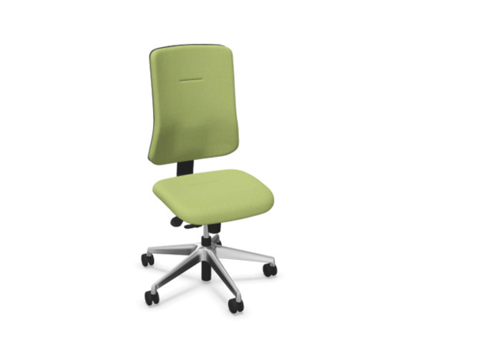 Ergonomisk kontorstol med halvpolstret ryg og synkronmekanisme samt justerbart sædedybde, udviklet til at give støtte ved aktiv siddestilling hele arbejdsdagen. Polstret med polyesterstof. Den synkroniserede bevægelse mellem ryg og sæde sikrer en aktiv og komfortabel siddeoplevelse. Rygvinklen er 20° synkroniseret med en sædevinkel på 11°. Ryglænet kan låses i 5 positioner og modstanden justeres nemt via et drejegreb. Ryglænet kan højdejusteres 70 mm med 5 låsbare niveauer. Sædedybden kan justeres 50 mm. Stolen har Anti-Shock-funktion, som forhindrer ryggen i at slå frem, når låsen frigives. Vælg mellem stel i sort polyamid eller poleret alu samt selvbremsende hjul til bløde eller hårde gulve. Tilvalg: justerbart lændestøtte (15 mm dybde, 20 mm højde) samt armlæn i 2D, 3D eller 4D.