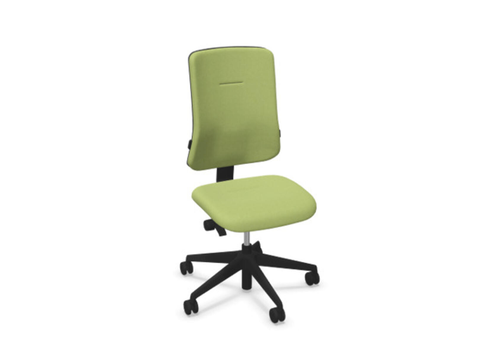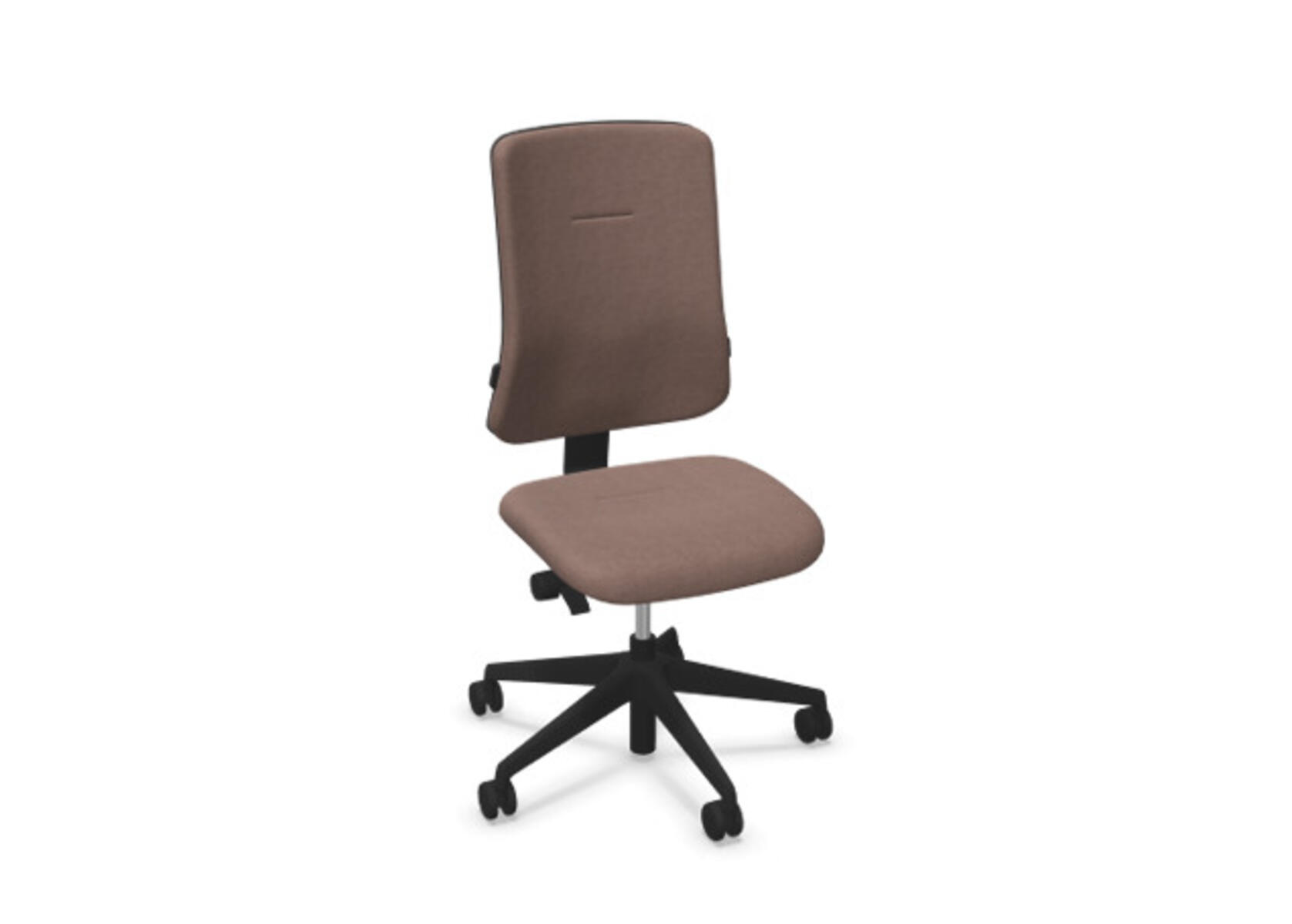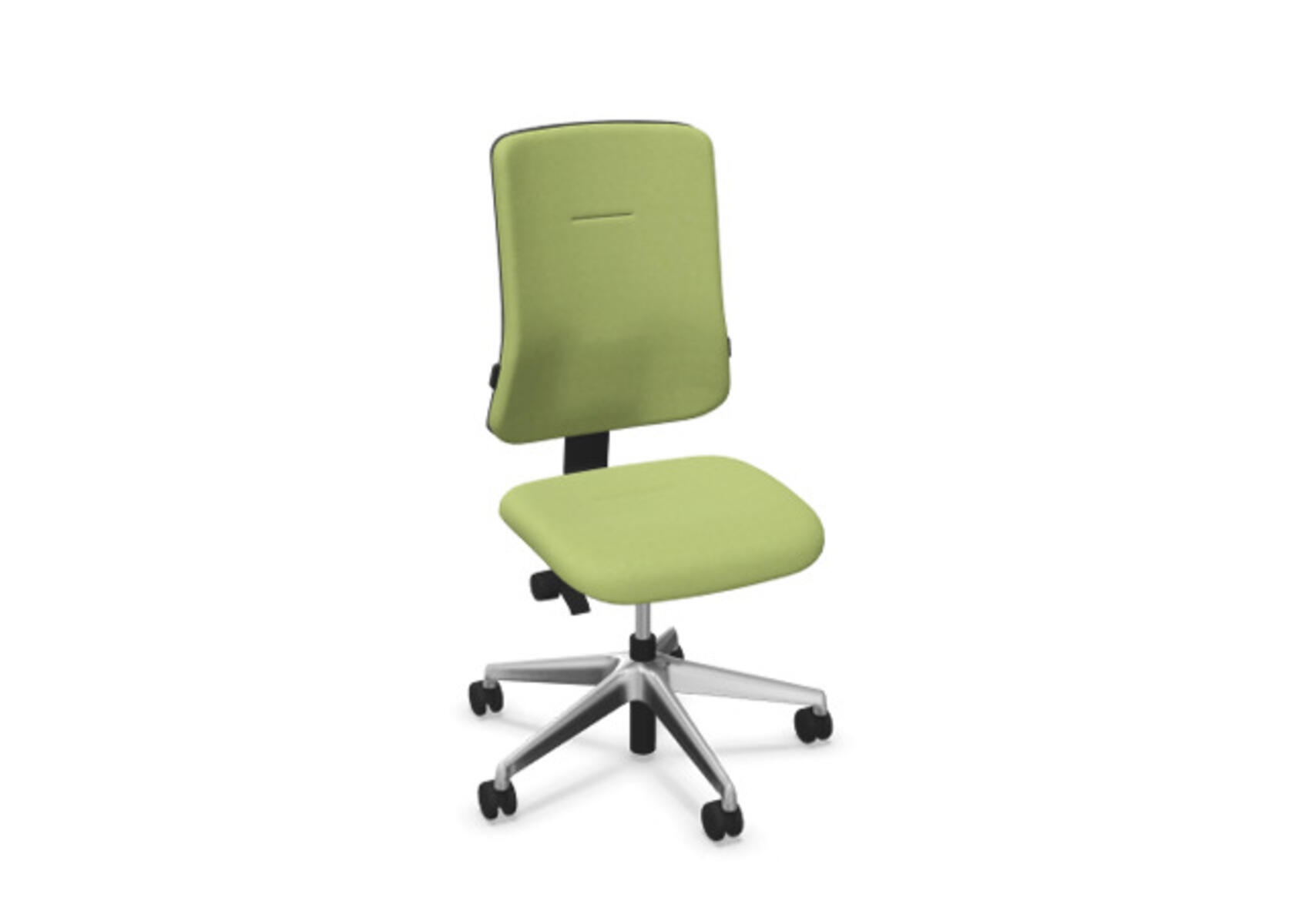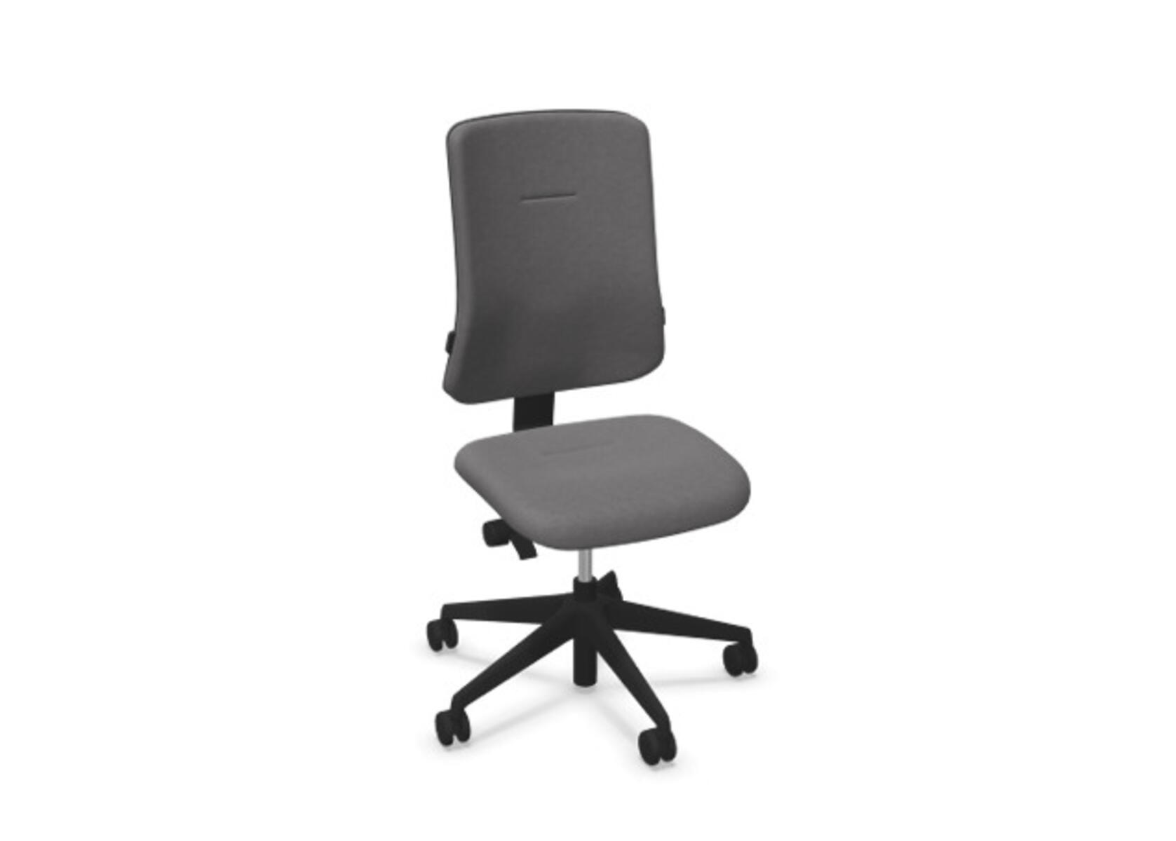 Ergonomisk kontorstol med halvpolstret ryg og synkronmekanisme, udviklet til at give støtte ved aktiv siddestilling gennem hele arbejdsdagen. Polstret med polyesterstof. Den synkroniserede vippefunktion mellem ryglæn og sæde giver en aktiv og ergonomisk siddestilling. Ryglænsvinklen er 20° synkroniseret med sædevinklen på 11°. Ryglænet kan låses i 5 positioner og modstanden justeres nemt via et drejegreb. Højdejustering af ryglæn: 70 mm fordelt på 5 låsepositioner. Sædedybden kan justeres 50 mm. Anti-Shock forhindrer ryglænet i at slå frem, når låsen frigøres. Vælg mellem kryds i sort polyamid eller poleret aluminium samt selvbremsende hjul til både bløde og hårde gulve. Som tilvalg findes justerbart lændestøtte (15 mm i dybde og 20 mm i højde). Armlæn 2D, 3D eller 4D sælges separat.