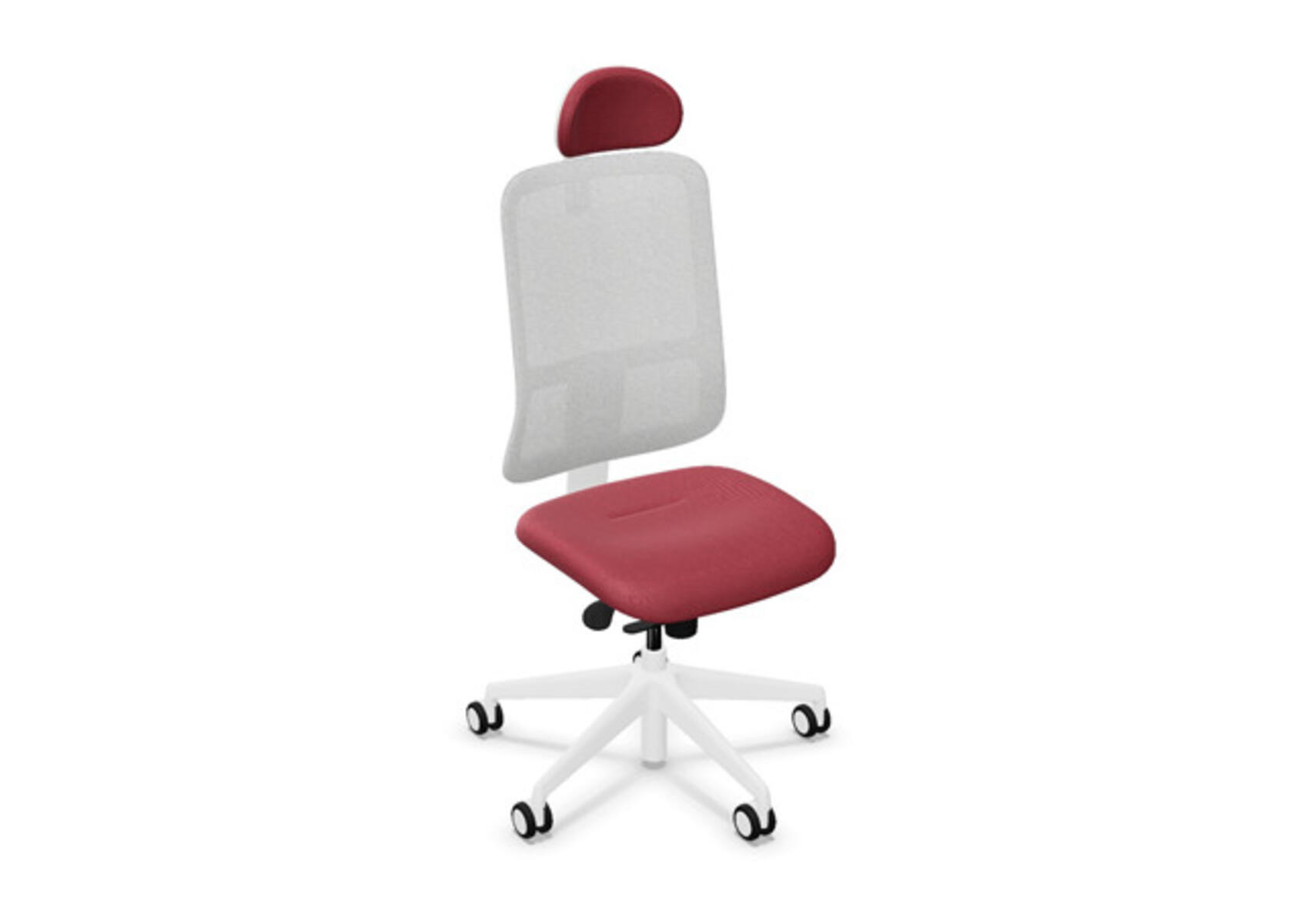 Ergonomisk kontorstol med mesh ryg og synkronmekanisme, udviklet til at give støtte ved aktiv siddestilling gennem hele arbejdsdagen. Betrukket med polyestertøj. Den synkroniserede bevægelse mellem ryg og sæde sikrer en aktiv og komfortabel siddeoplevelse. Ryglænets hældning er 20° synkroniseret med sædets 11°. Ryglænet kan låses i 5 positioner og modstanden justeres nemt via et drejegreb. Ryggen kan højdejusteres 70 mm i 5 trin. Sædedybden kan justeres 50 mm. Stolen er udstyret med Anti-Shock, som forhindrer at ryggen smækker tilbage, når låsen frigøres. Vælg mellem kryds i sort polyamid eller poleret aluminium samt selvbremsende hjul til bløde eller hårde gulve. Som tilvalg findes justerbart lændestøtte (15 mm i dybde og 20 mm i højde). Armlæn 2D, 3D eller 4D sælges separat.
