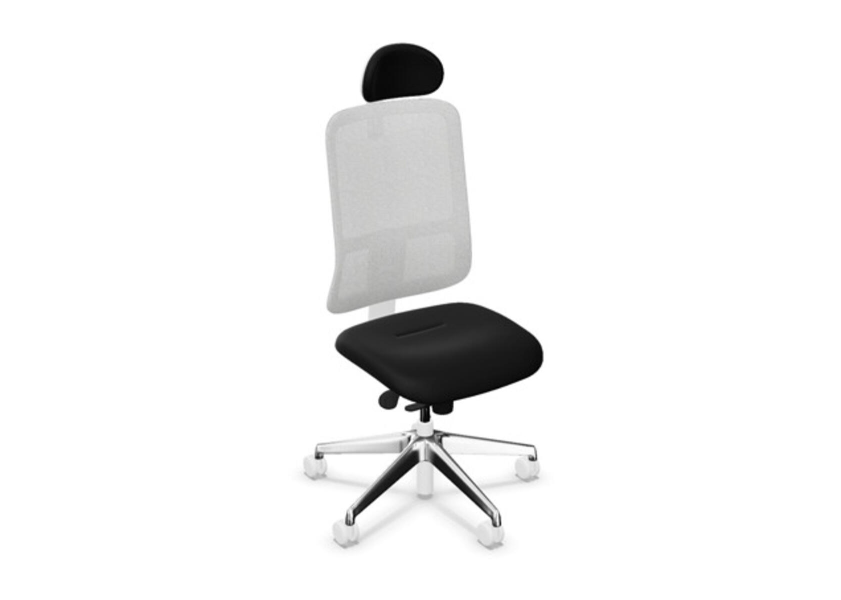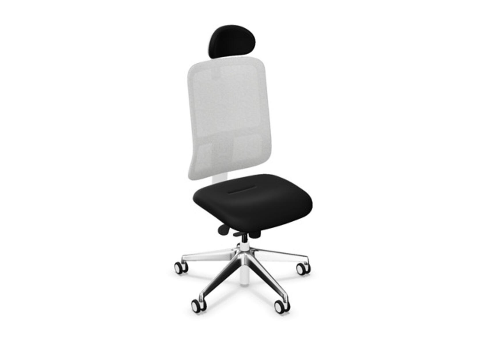 Ergonomisk kontorstol med mesh ryg og synkronmekanisme samt justerbart sædedybde, designet til at give støtte ved aktiv siddestilling hele arbejdsdagen. Betrukket med polyesterstof. Den synkroniserede bevægelse mellem ryglæn og sæde giver en aktiv og behagelig siddestilling. Ryglænets hældningsvinkel er 20° og synkroniseret med sædets hældningsvinkel på 11°. Ryglænet kan låses i 5 positioner, og modstanden justeres enkelt via et drejegreb. Ryglænet kan højdejusteres 70 mm med 5 låsepositioner. Polstret nakkestøtte, justerbar i dybde (20 mm), vinkel (70°) og højde (100 mm). Sædedybden kan justeres 50 mm. Stolen har Anti-Shock-funktion, som forhindrer ryglænet i at slå tilbage, når hældningen låses op. Vælg mellem kryds i lysegrå polyamid eller poleret aluminium samt selvbremsende hjul til enten bløde eller hårde gulve. Som tilvalg findes justerbart lændestøtte (15 mm i dybde og 20 mm i højde). Armlæn 2D, 3D eller 4D sælges separat.