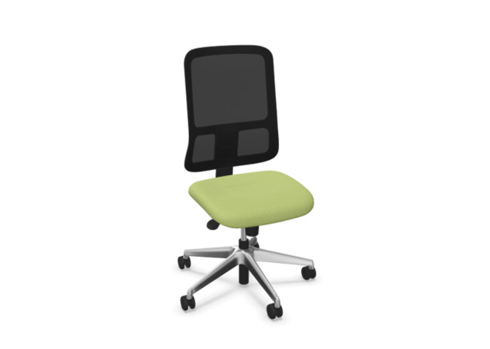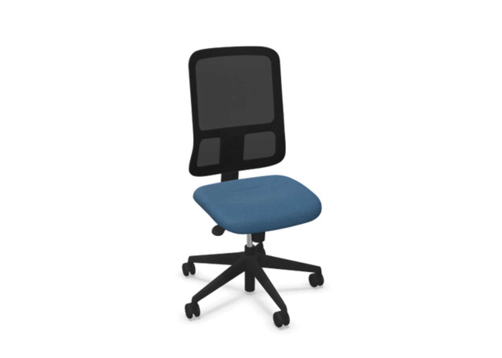 Ergonomisk kontorstol med halvpolstret ryg og synkronmekanisme, udviklet til at give støtte ved aktiv siddestilling gennem hele arbejdsdagen. Betrukket med polyesterstof. Den synkroniserede bevægelse mellem ryglæn og sæde sikrer en aktiv og behagelig siddestilling. Ryglænsvinklen er 20° synkroniseret med sædevinklen på 11°. Ryglænet kan låses i 5 positioner og modstanden justeres nemt med et drejegreb. Ryglænet kan højdejusteres 70 mm med 5 låsepositioner. Sædedybden kan justeres 50 mm. Stolen er udstyret med Anti-Shock, som forhindrer ryglænet i at slå tilbage, når låsningen frigøres. Vælg mellem kryds i sort polyamid eller poleret aluminium samt selvbremsende hjul til bløde eller hårde gulve. Som tilvalg findes justerbart lændestøtte (15 mm i dybde og 20 mm i højde). Armlæn 2D, 3D eller 4D sælges separat.