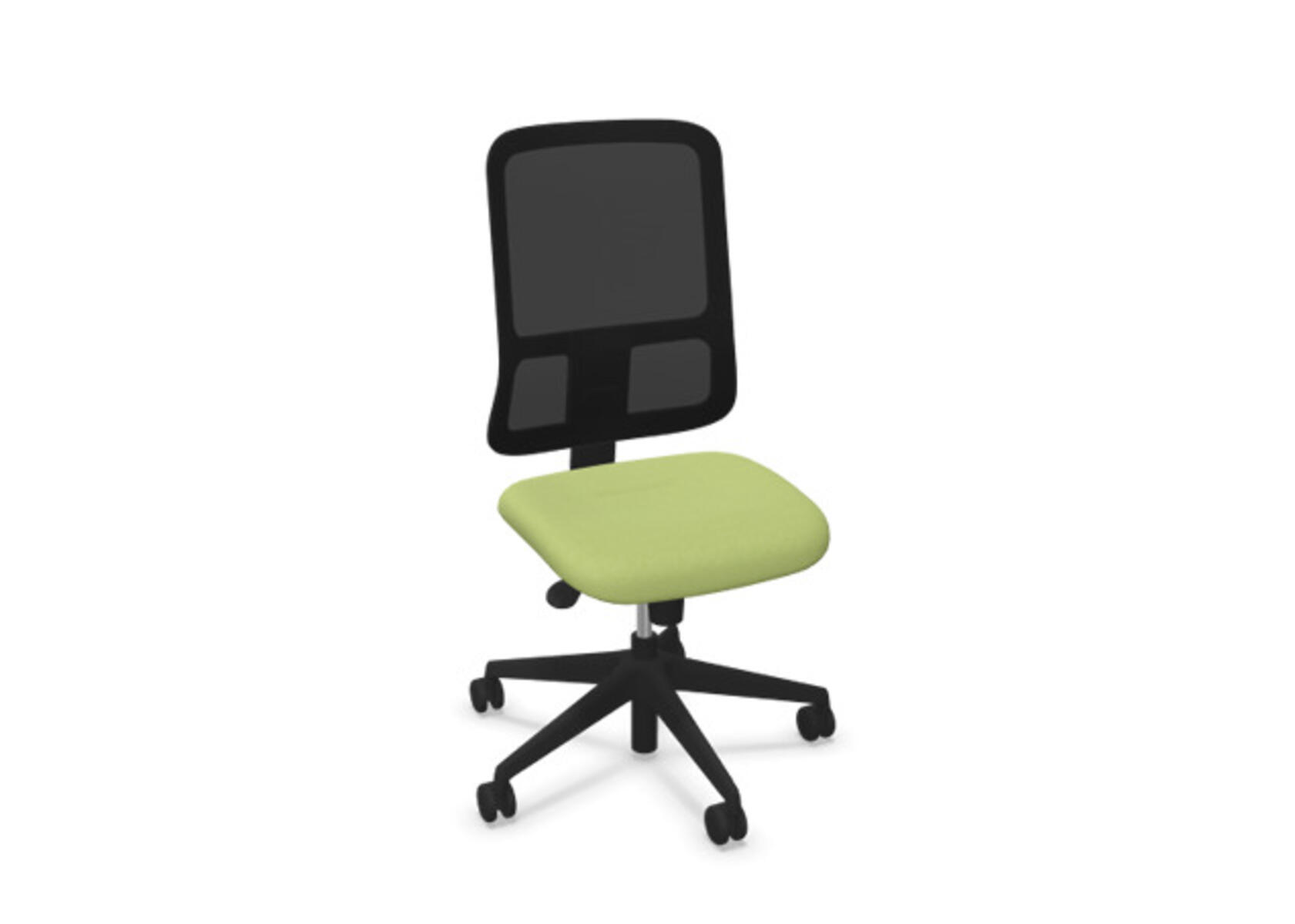 Ergonomisk kontorstol med halvpolstret ryg og synkronmekanisme, udviklet til at give støtte ved aktiv siddestilling gennem hele arbejdsdagen. Betrukket med polyestertøj. Den synkroniserede bevægelse mellem ryg og sæde sikrer en aktiv og komfortabel siddeoplevelse. Ryglænets hældning er 20° synkroniseret med sædets 11°. Ryglænet kan låses i 5 positioner og modstanden justeres nemt via et drejegreb. Ryggen kan højdejusteres 70 mm i 5 trin. Sædedybden kan justeres 50 mm. Stolen er udstyret med Anti-Shock, som forhindrer at ryggen smækker tilbage, når låsen frigøres. Vælg mellem kryds i sort polyamid eller poleret aluminium samt selvbremsende hjul til bløde eller hårde gulve. Som tilvalg findes justerbart lændestøtte (15 mm i dybde og 20 mm i højde). Armlæn 2D, 3D eller 4D sælges separat.