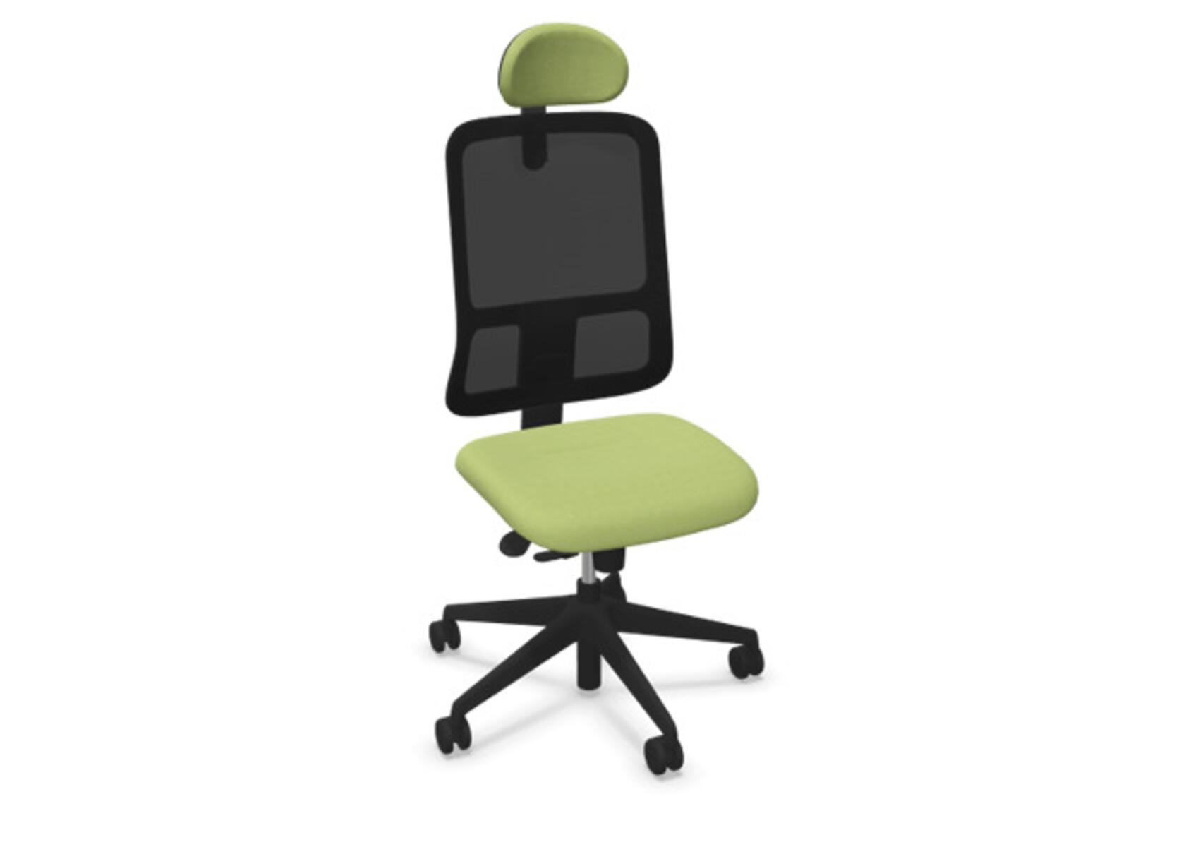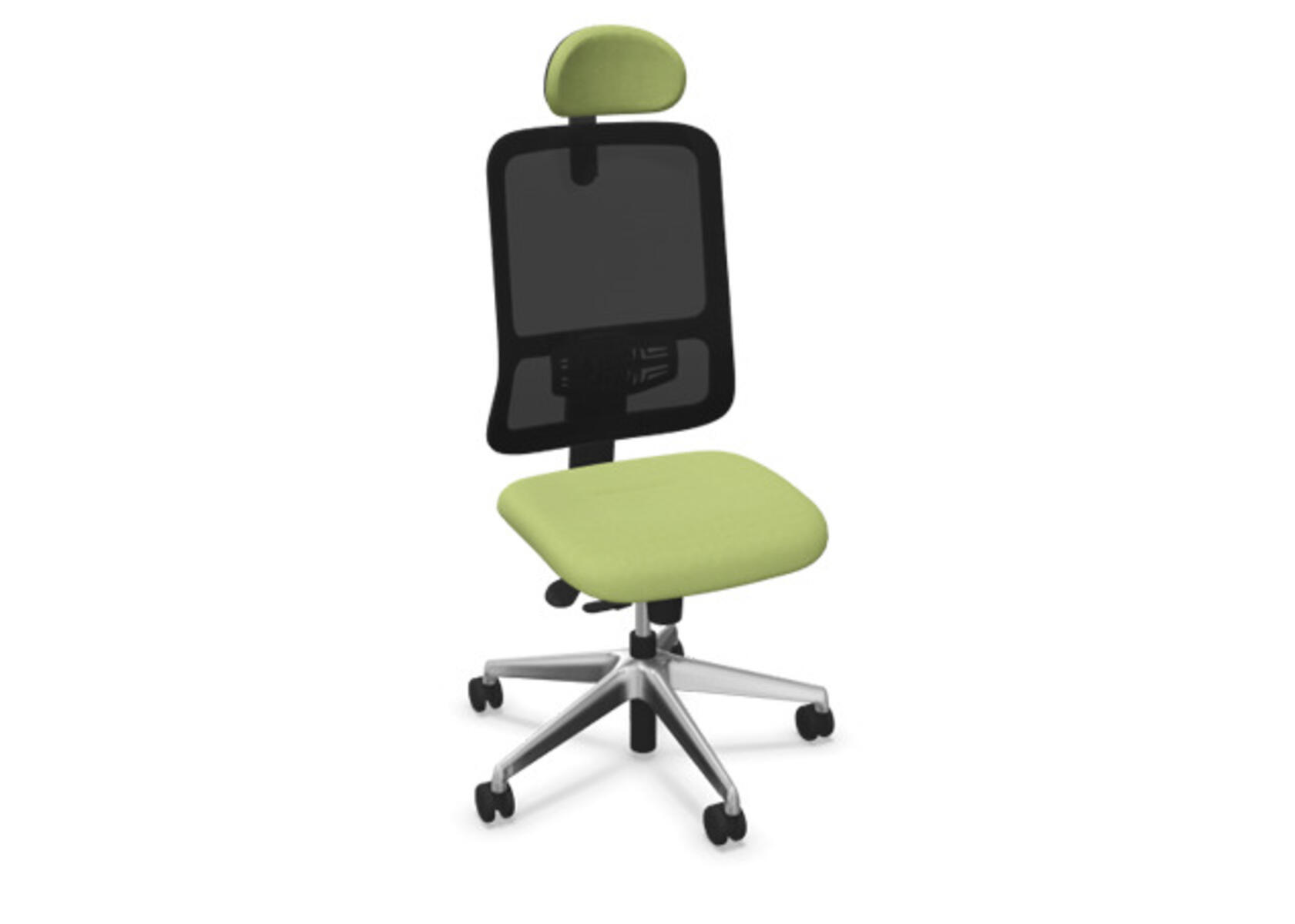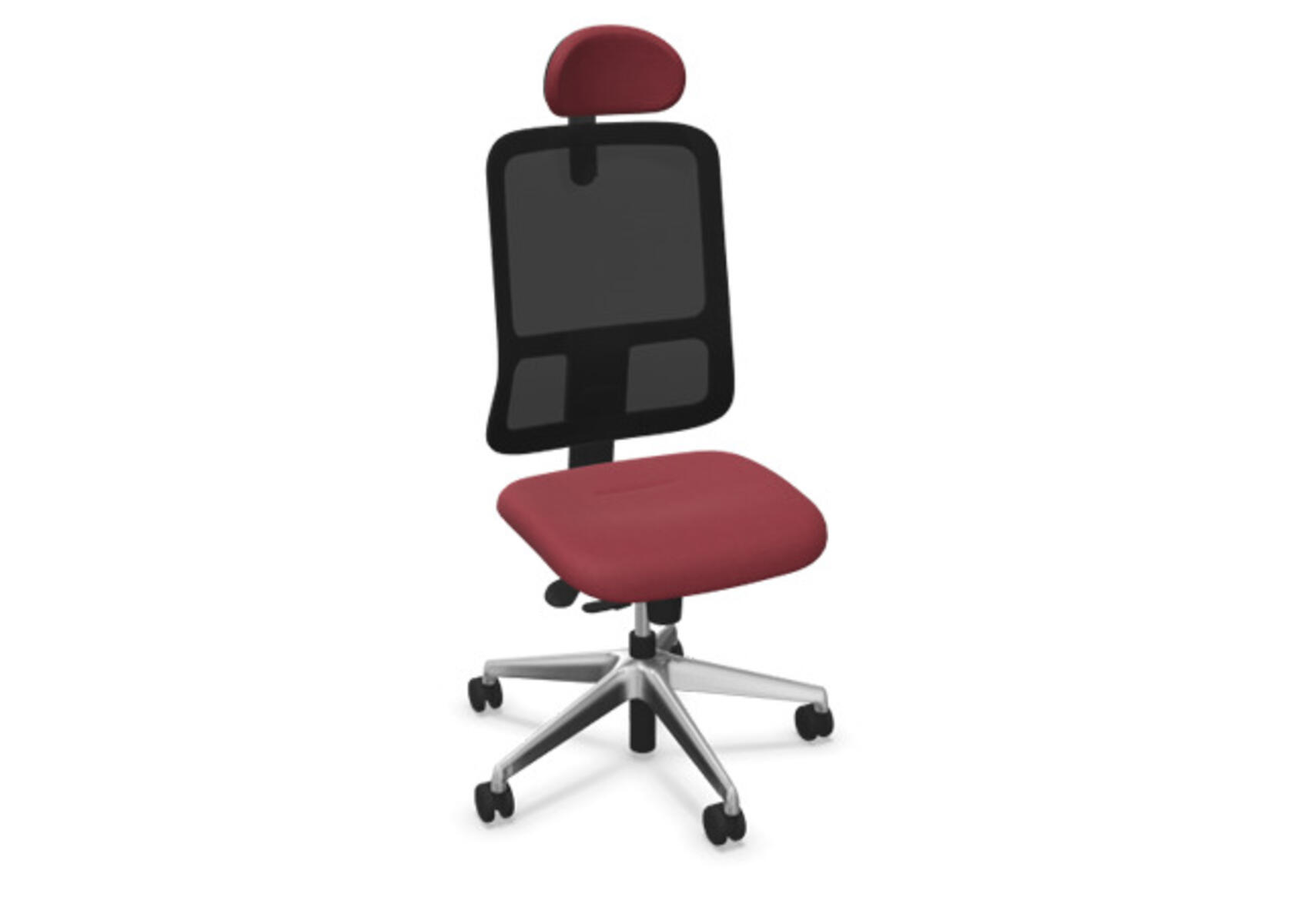 Ergonomisk kontorstol med mesh ryg og synkronmekanisme, udviklet til at give støtte ved aktiv siddestilling gennem hele arbejdsdagen. Betrukket med polyestertøj. Den synkroniserede bevægelse mellem ryg og sæde sikrer en aktiv og komfortabel siddeoplevelse. Ryglænets hældning er 20° synkroniseret med sædets 11°. Ryglænet kan låses i 5 positioner og modstanden justeres nemt via et drejegreb. Ryggen kan højdejusteres 70 mm i 5 trin. Sædedybden kan justeres 50 mm. Stolen er udstyret med Anti-Shock, som forhindrer at ryggen smækker tilbage, når låsen frigøres. Vælg mellem kryds i sort polyamid eller poleret aluminium samt selvbremsende hjul til bløde eller hårde gulve. Som tilvalg findes justerbart lændestøtte (15 mm i dybde og 20 mm i højde). Armlæn 2D, 3D eller 4D sælges separat.