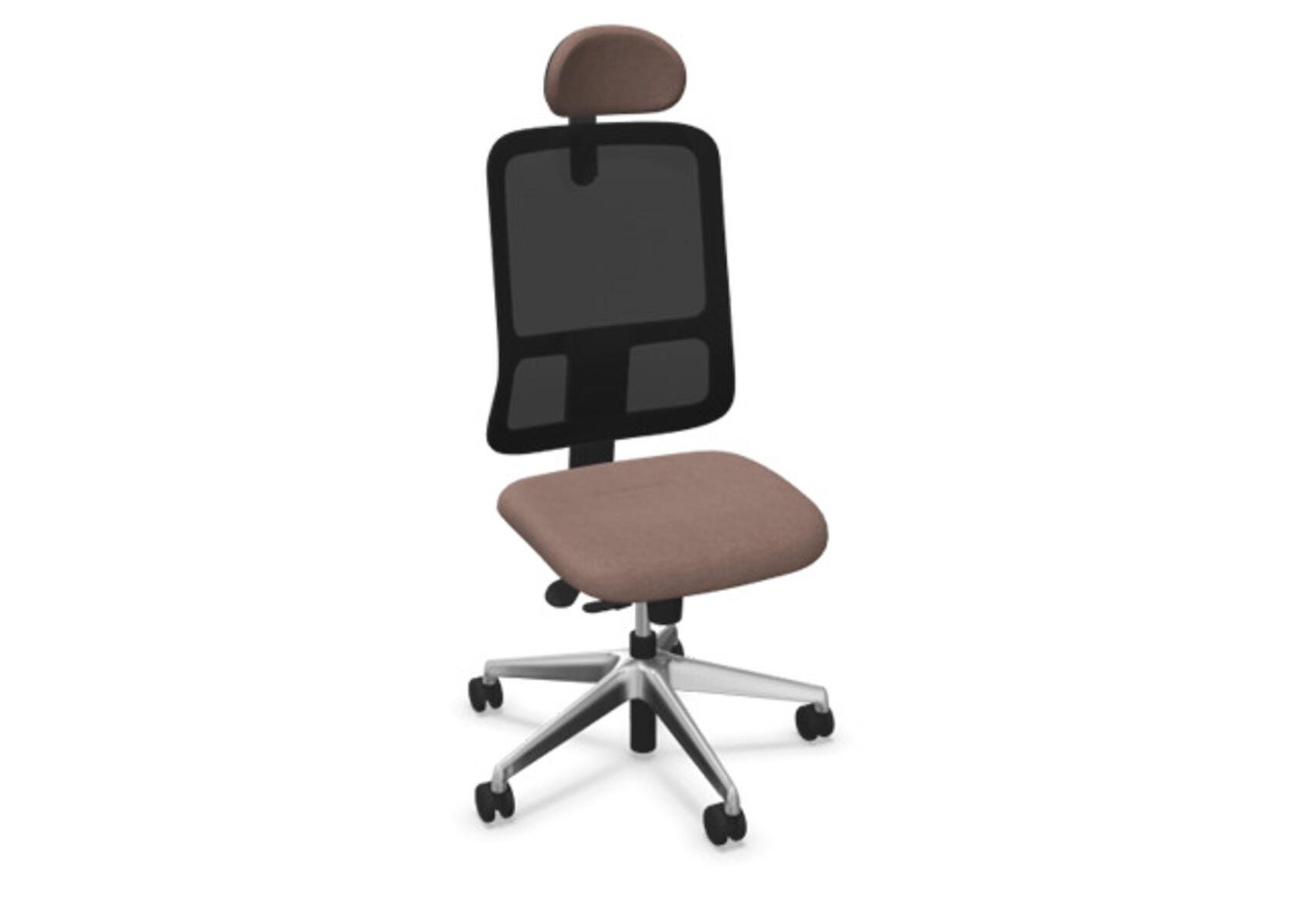 Ergonomisk kontorstol med mesh ryg og synkronmekanisme, designet til at give støtte ved aktiv siddestilling gennem hele arbejdsdagen. Polstret i polyesterstof. Den synkroniserede bevægelse mellem ryg og sæde sikrer en aktiv og komfortabel siddestilling. Ryglænet har en hældningsvinkel på 21°, synkroniseret med sædets hældningsvinkel på 7°. Ryglænet kan låses i 4 positioner og er udstyret med en automatisk vægtafviget modstand, som kan finjusteres i yderligere 3 trin. Ryglænet er højdejusterbart 70 mm med 5 låsepositioner. Polstret nakkestøtte, justerbar i dybde 20 mm, vinkel 70° og højde 100 mm. Sædedybden kan justeres 50 mm. Stolen har Anti-Shock funktion, som forhindrer ryglænet i at slå tilbage, når låsningen frigives. Vælg mellem kryds i lysegrå polyamid eller poleret aluminium samt selvbremsende hjul til bløde eller hårde gulve. Som tilvalg findes justerbart lændestøtte (15 mm i dybde og 20 mm i højde). Armlæn 2D, 3D eller 4D sælges separat.