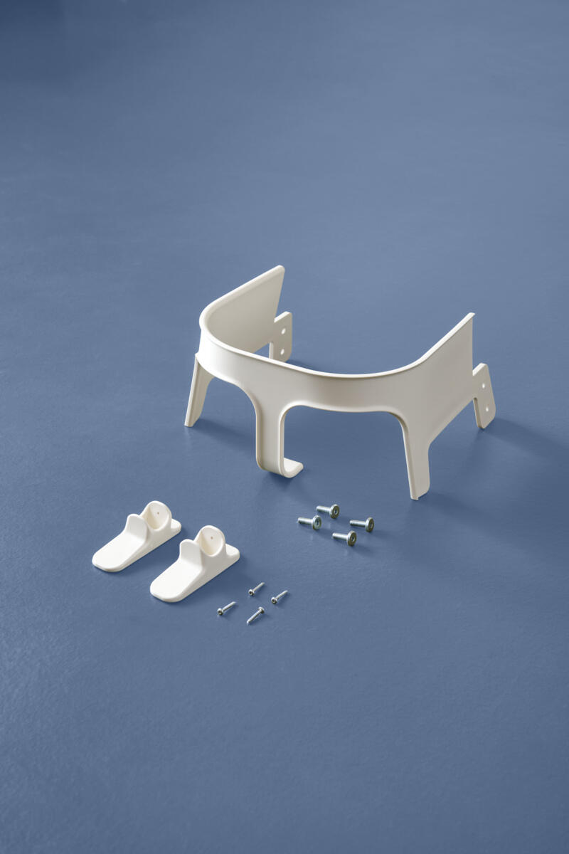 Denne formstøbte bøjle, inklusive fødder, er designet til brug sammen med barnestolen Grow med en sædedybde på 21 cm. Bøjlen monteres nemt i stolens bagben med de medfølgende skruer, hvilket eliminerer behovet for skruehuller i sædet – en løsning, der reducerer risikoen for ophobning af snavs. For at opfylde sikkerhedskravene til en høj barnestol med bøjle, skal fødderne monteres i henhold til instruktionerne ved hjælp af de medfølgende skruer. Kontrollér, at din stol er forberedt til montering af bøjlen (dvs. har huller i bagbenene), før du foretager din bestilling. Bemærk, at bøjlen ikke må anvendes, hvis stolen er udstyret med armlæn.