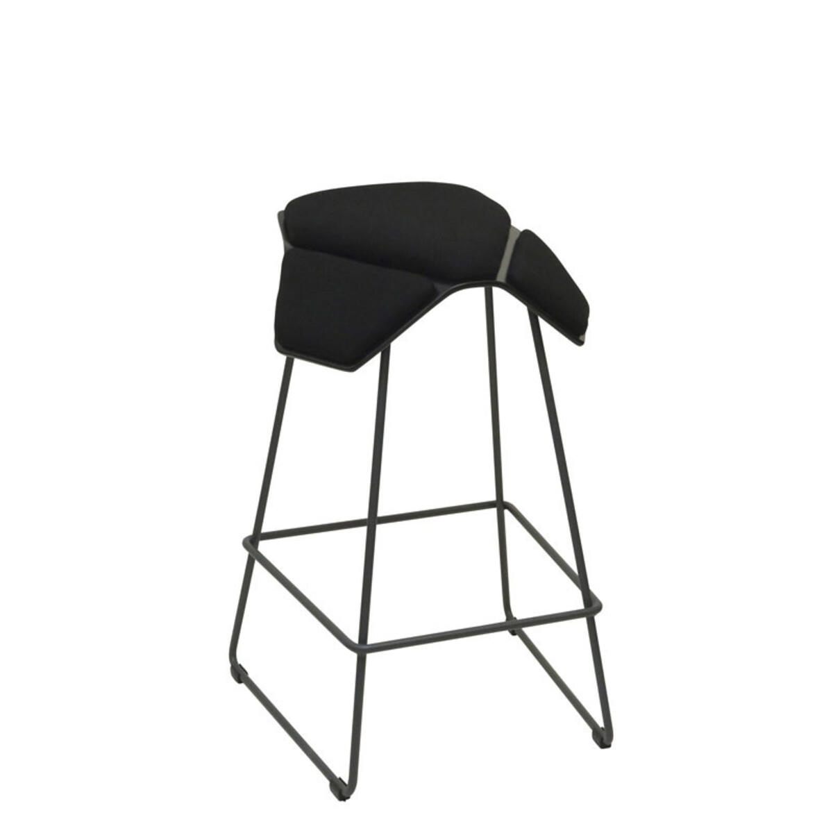 Finsk design af Jonas Hakaniemi produceret af myKolme. Formpresset sæde i birk helbeklædt med en 4 cm høj siddepude med valgfrit betræk i stoffet Fame -96 (60999), -95 (60003) og -11 (63016). Fame-stoffet er af 95 % uld og 5 % polyamid. Sortlakeret understel med møbeldupper.