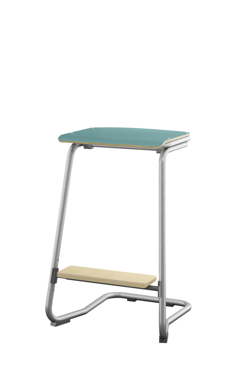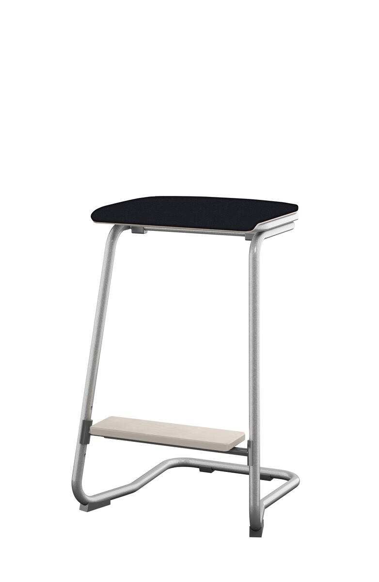 Taburet med lyddæmpende fødder. Kan stables og hænges på bordet. Med justerbar fodplade i 3 faste positioner. Sæde i højtrykslaminat. Sølvlakeret stel, RAL 9006. Tilvalg: sæde betrukket med stof Xtreme Padang YS145 (100 % polyester). Testet og godkendt iht. standard EN 1729-2.