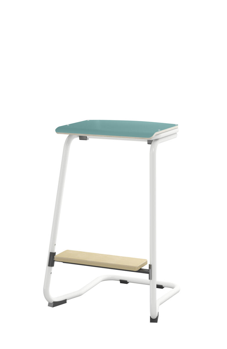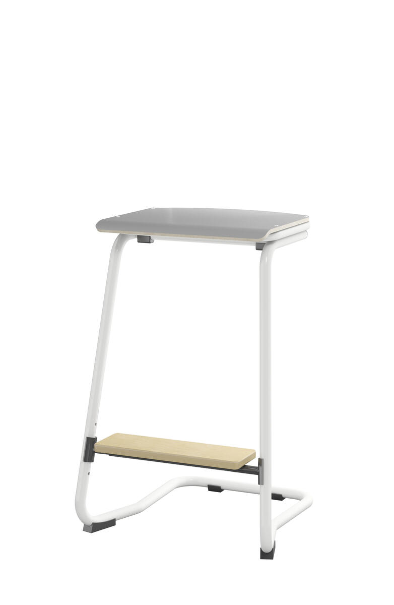 Taburet med lyddæmpende fødder. Kan stables og hænges på bordet. Med justerbar fodplade i 3 faste positioner. Sæde i højtrykslaminat. Sølvlakeret stel, RAL 9006. Tilvalg: sæde betrukket med stof Xtreme Padang YS145 (100 % polyester). Testet og godkendt iht. standard EN 1729-2.