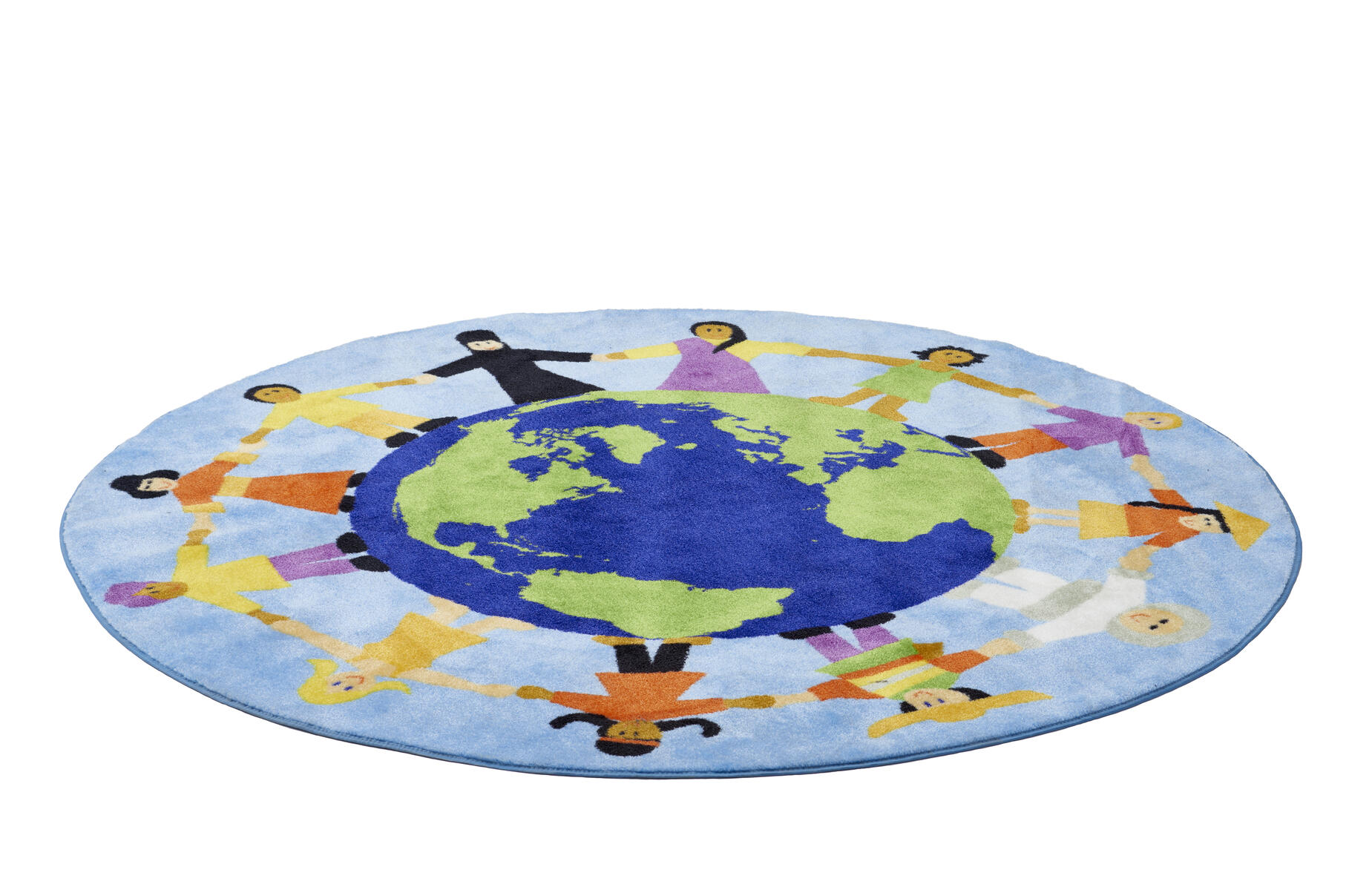 Farverigt tæppe med børnevenligt design som opmuntrer børn til at snakke om etnicitet og kultur. Skridsikker gummiunderside. Tykt tæppe fremstillet i nylon. Mål: Ø200 cm.