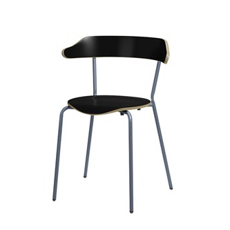 Massiv birk. Formpresset sæde og ryg. Højtrykslaminat på sæde. Med lyddæmpning under sæde. Kan stables og hænges på bordet. Siddehøjde 45 cm. Siddedybde 41 cm.
