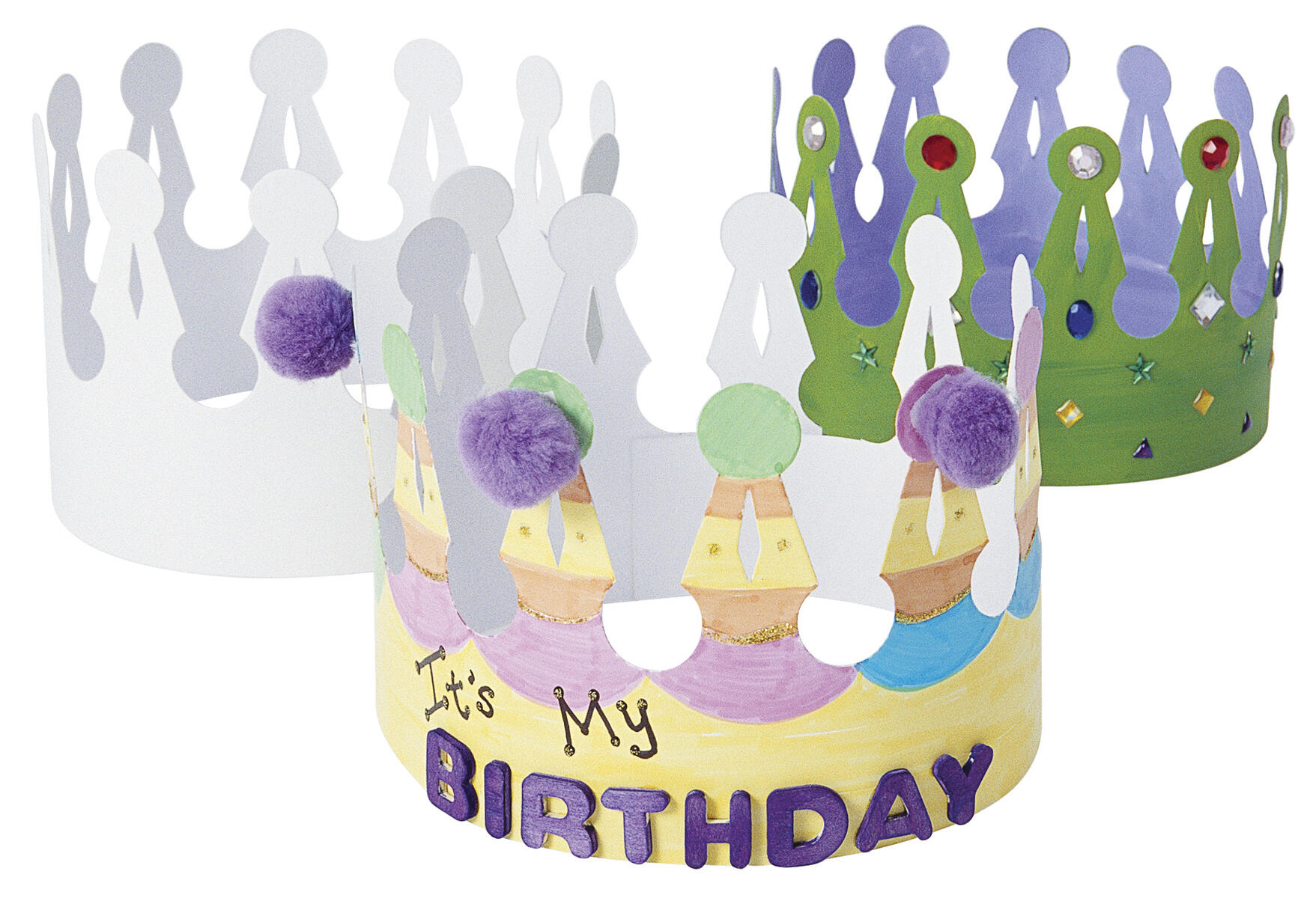 24 stk./pk. Hvide kroner, som kan dekoreres. Passer perfekt til fejring af fødselsdage, teaterforestillinger m.m. Kronerne har hager til justering af størrelsen, så de passer til alle hoveder. Mål: L61xH12,5 cm. I karton.