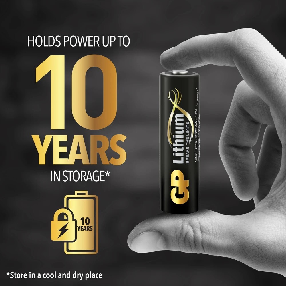 4 stk./pk. Kraftigt AA-litiumbatteri til professionelle og energikrævende applikationer. 40 % lettere end alkaliske batterier og fungerer i ekstreme forhold (−40 °C til +60 °C). 10 års levetid. Ikke genopladeligt.