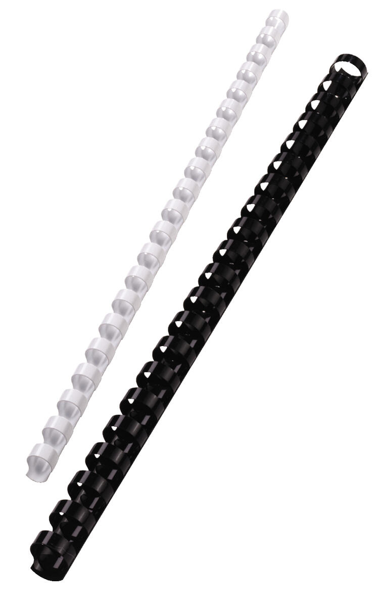 50 stk./pk. Kapaciteten er 1-45 stk. 80 gr/spiral. Det er hurtigt at åbne og lægge flere blade og siden lukke spiralen. En "zipper" medfølger, som gør, at man ne,t kan åbne eller lukke bindingen. Plastspiralen er fremstillet af miljøvenligt polypropylenplast og konstrueret, så man kan vende siderne rundt. Passer til Clickman.