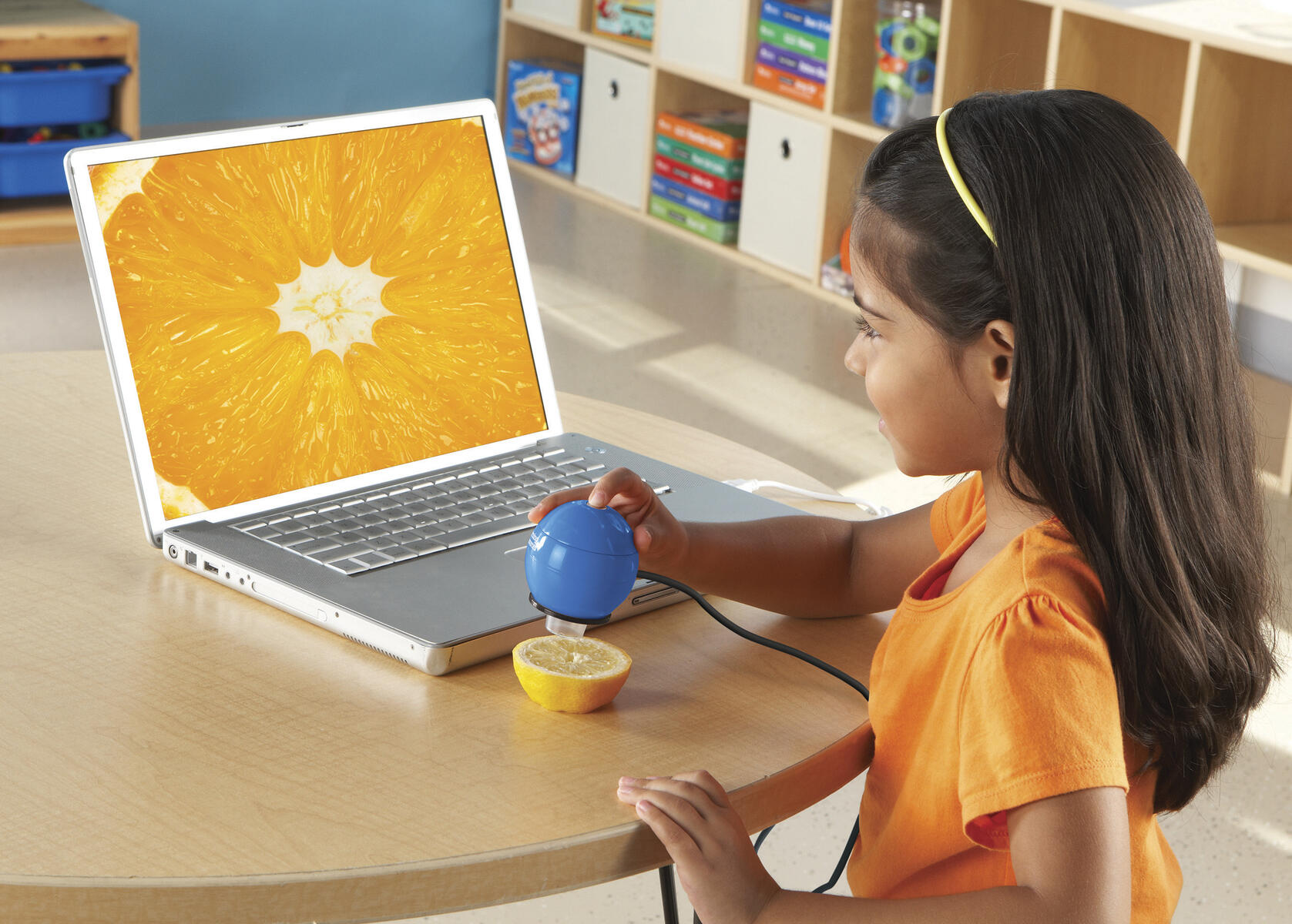 Håndholdt digitalt mikroskop, som passer godt til tidlige videnskabelige studier. Tilsluttes interaktivt whiteboard eller computer, så man kan vise de forstørrede billeder. 54x forstørrelse og 640x480 pixels, VGA CMOS-sensor og 4 LED-pærer samt 2 hovedadaptere, som giver endnu mere præcis forstørrelse. Mål: 6,5x6,5 cm. Tilsluttes med USB-kabel (medfølger). Kompatibel med PC og MAC. Alder: 4+.