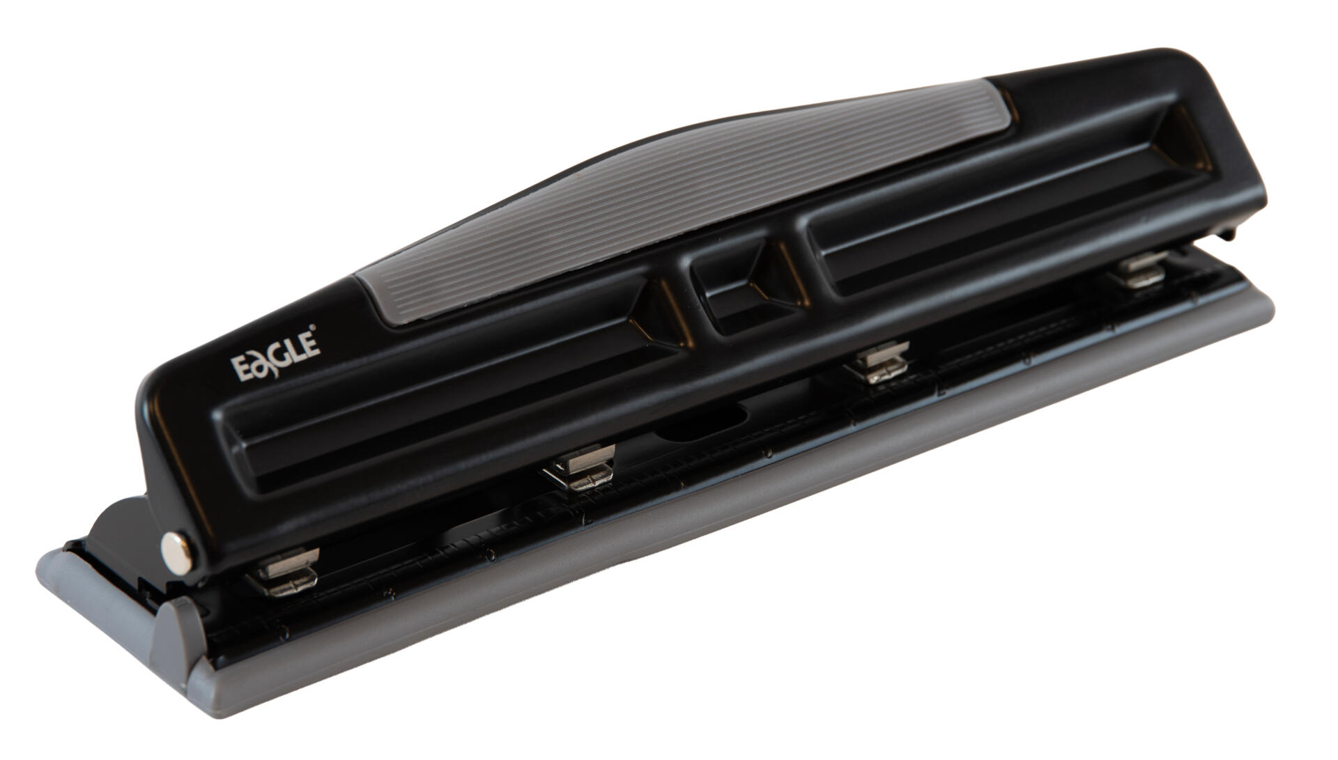 80 mm hulafstand. 2 huller: Klarer op til 20 ark, 5 mm huller. 4 huller: Klarer op til 10 ark, 7 mm huller. Af metal og ABS-plast. Står fast på beholder af polypropylen.