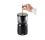 Elektrisk blyantspidser til runde, sekskantede og trekantede farveblyanter Ø8-11 mm. Ladepladen gør det muligt at bruge blyantspidseren forskellige steder. I sort farve med transparent beholder. Låget er nemt at tage af, når beholderen skal tømmes. Blyantspidser af stål. Ekstra spidser kan købes på varenr. 23028. Mål: Ø10,5xH20,5 cm. Brugsanvisning medfølger. 220-230 V. CE-mærket.