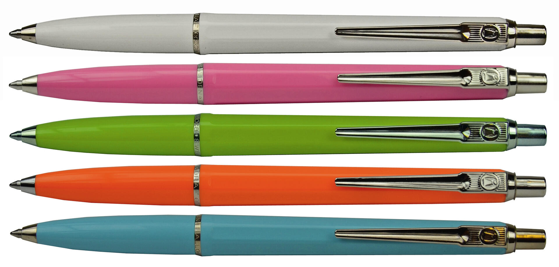 50 stk./pk. Kuglepen med trykmekanisme i blækkets farve. Medium patron med en skrivelængde på ca. 2000 m. Pennekrop af polypropylen. Kan ikke genopfyldes med blæk.