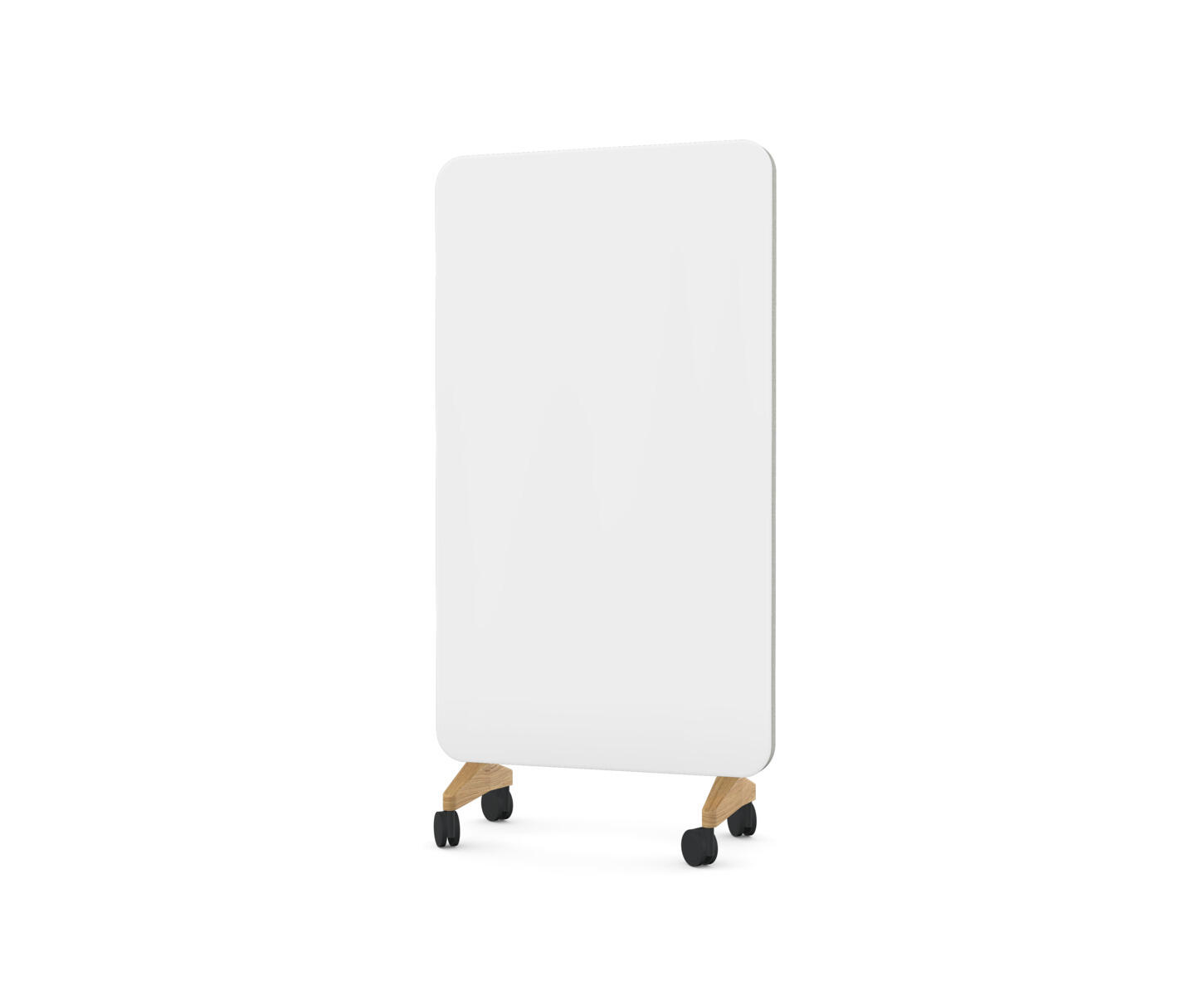 Mobil magnetbærende skrivetavle med fulddækkende glas på forsiden og stofbeklædt, nålefast bagside. Lydabsorberende fyld. Hærdet, optisk glas. Kræver særligt tilpassede, kraftigere magneter. Fås i flere udvalgte farvekombinationer. Fødder sælges separat.