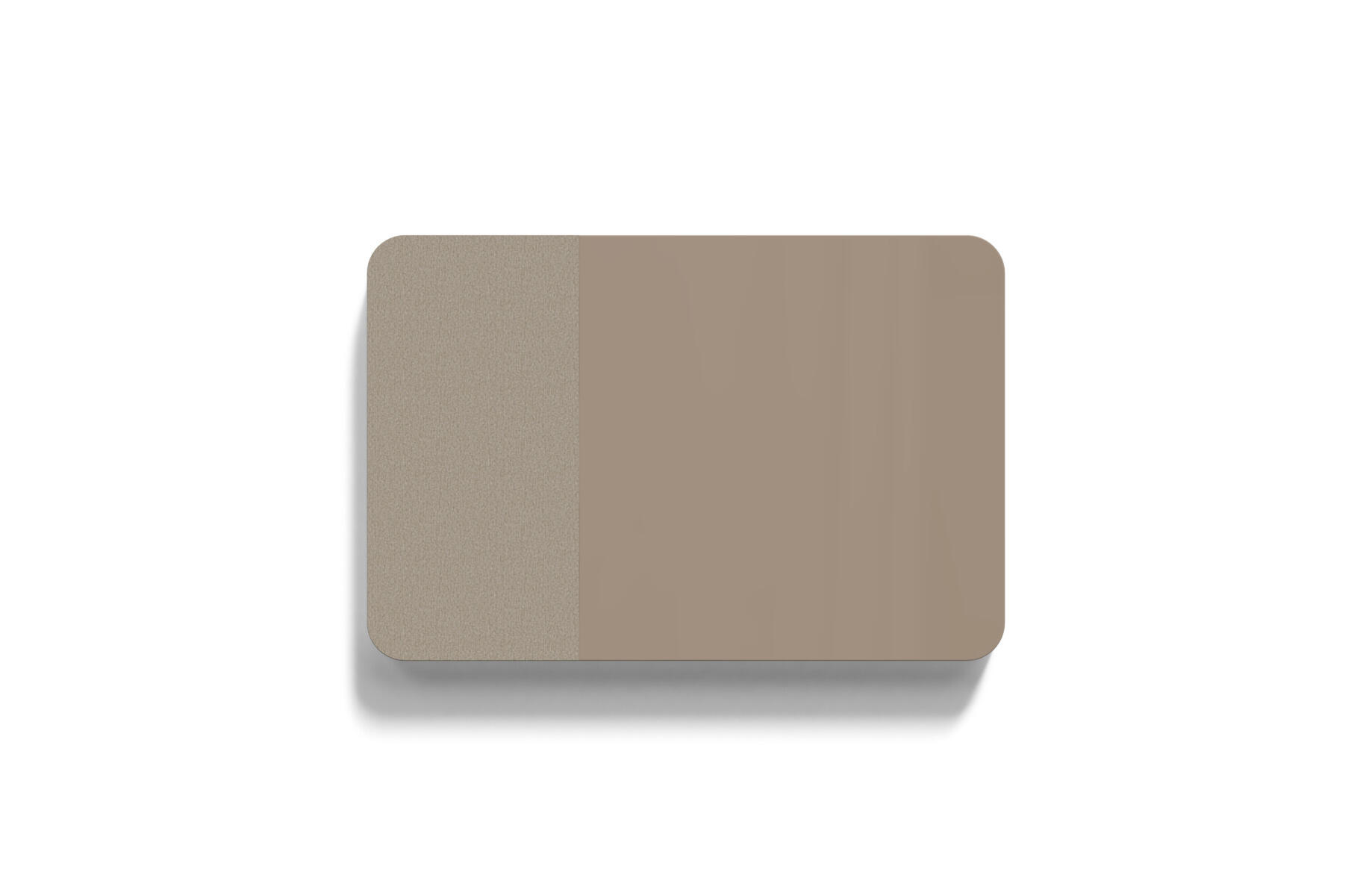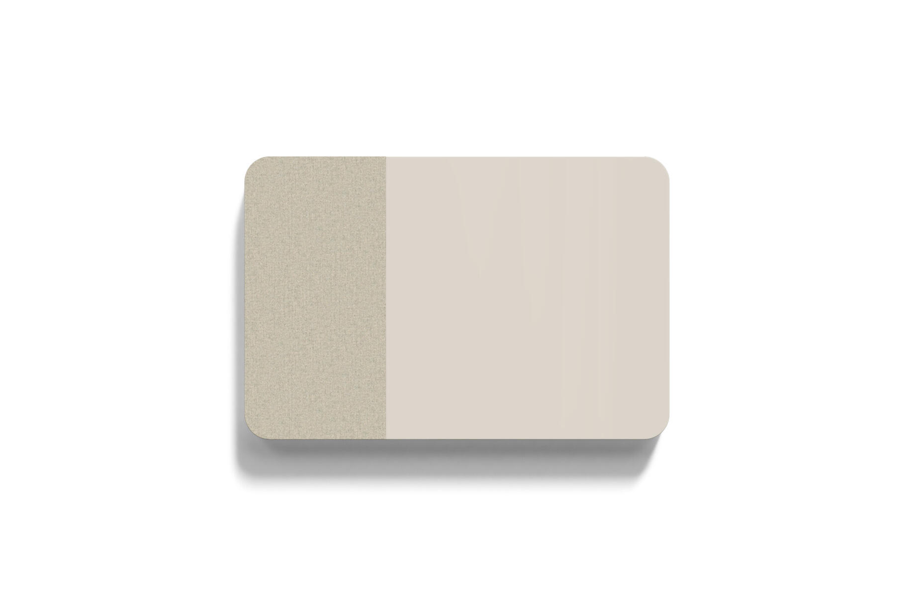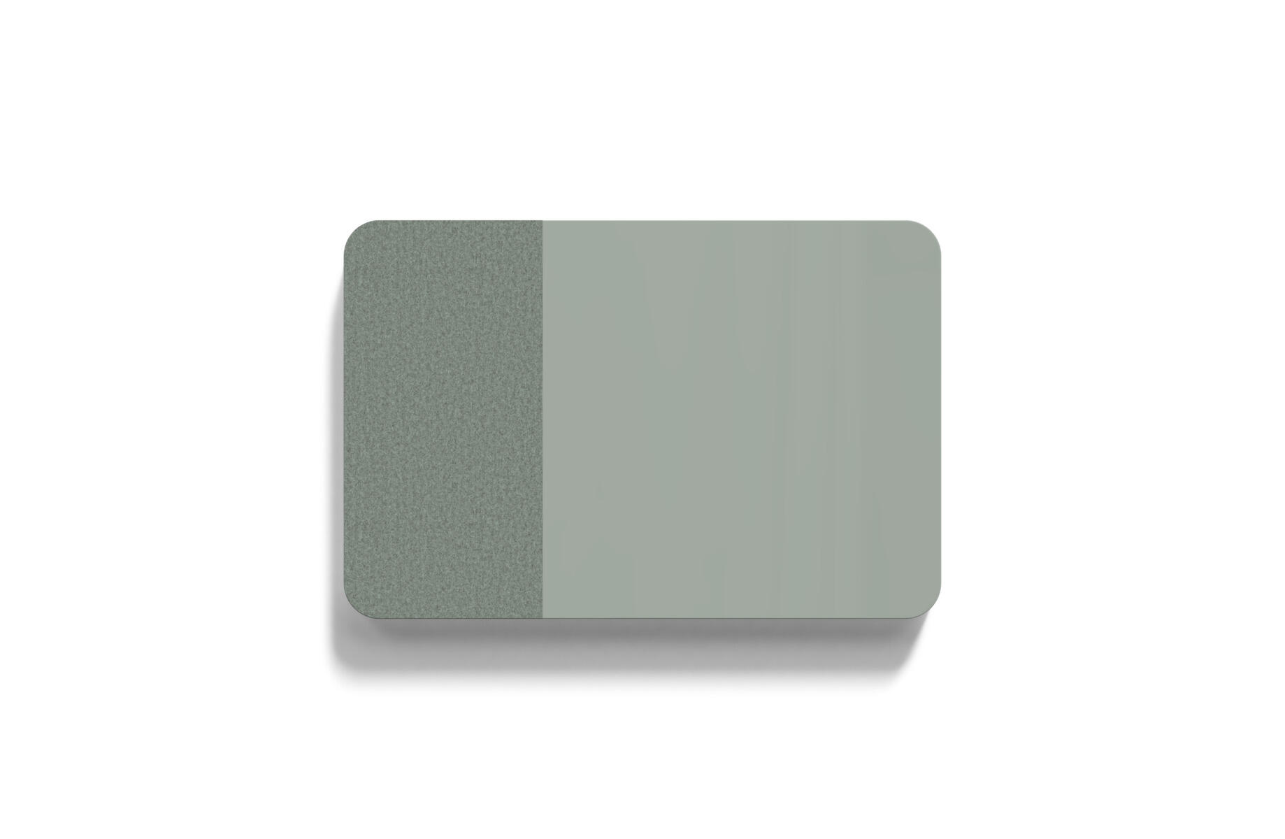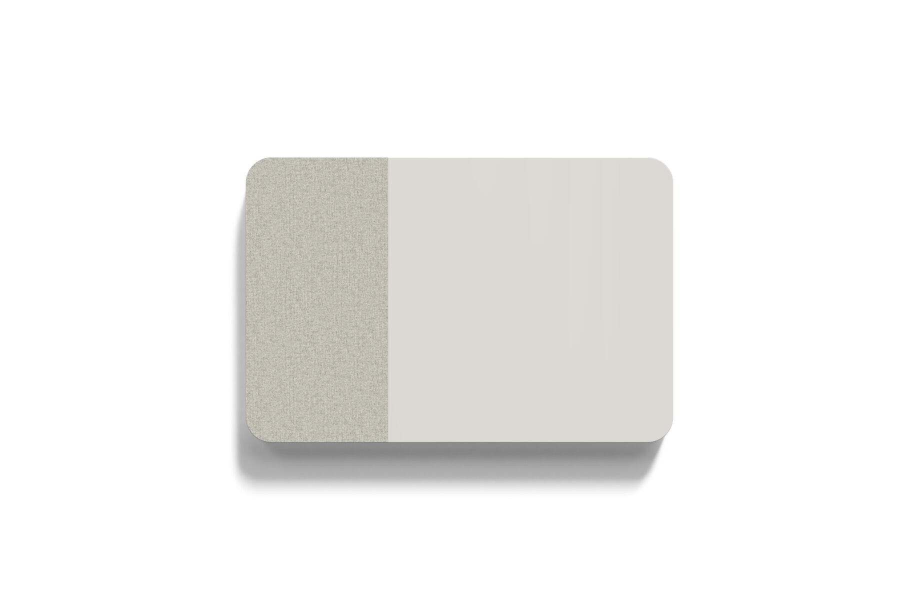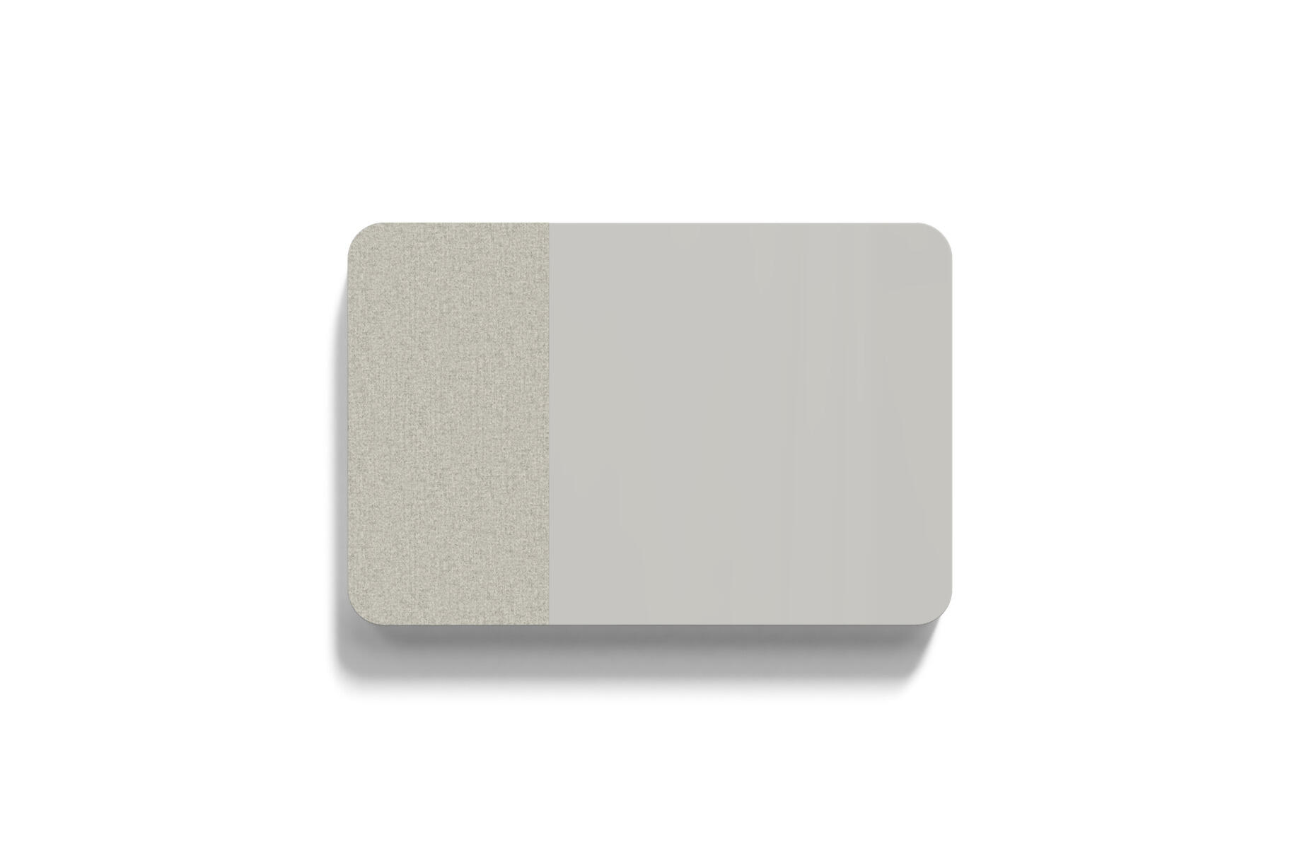 Tavle med en kombination af stofbeklædt overflade og magnetisk glasflade man kan skrive på samt lydabsorberende fyld. Den stofbeklædte overflade er 50 cm bred. Skjulte beslag.