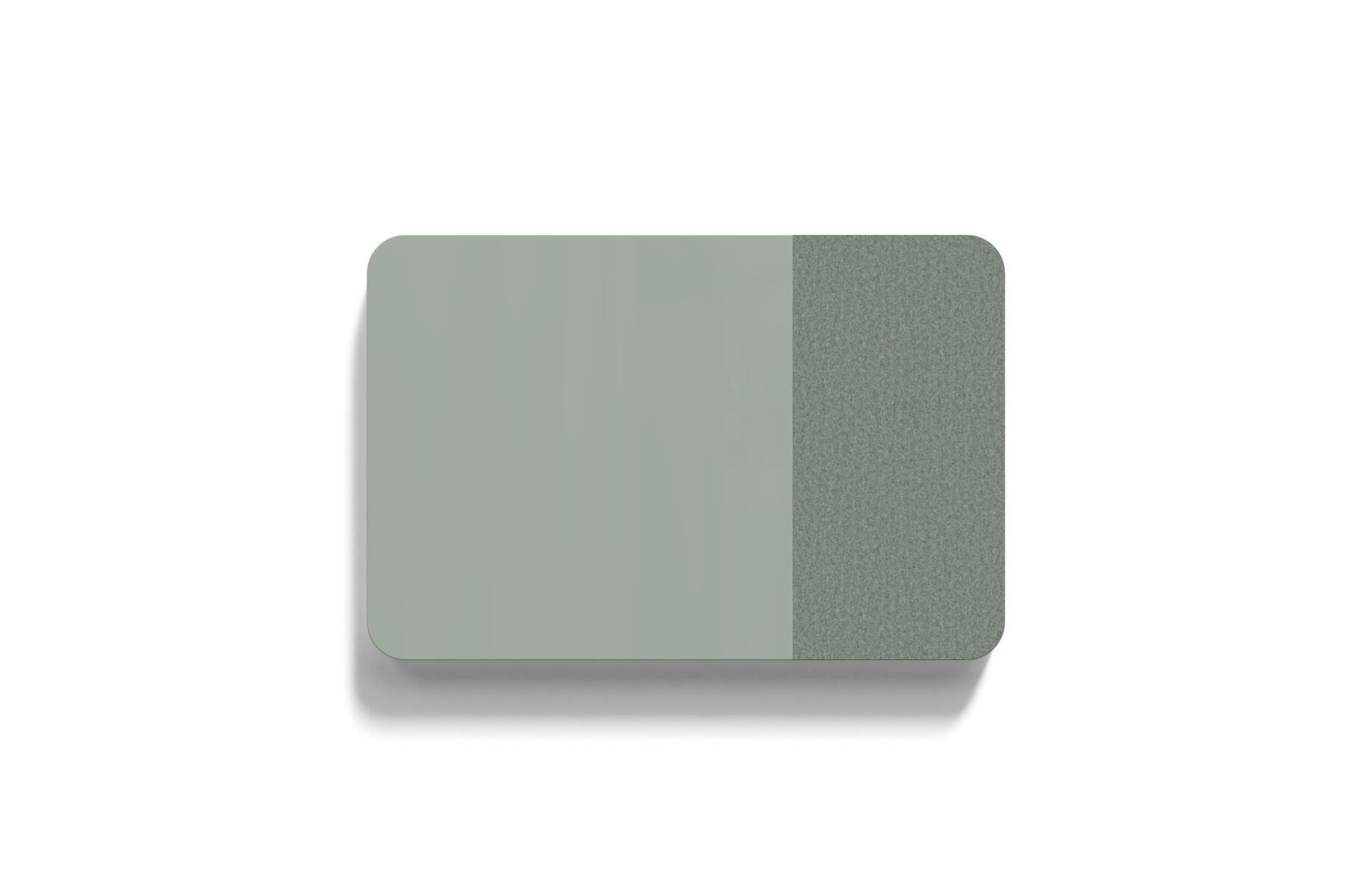 Tavle med en kombination af stofbeklædt overflade og magnetisk glasflade man kan skrive på samt lydabsorberende fyld. Den stofbeklædte overflade er 50 cm bred. Skjulte beslag.