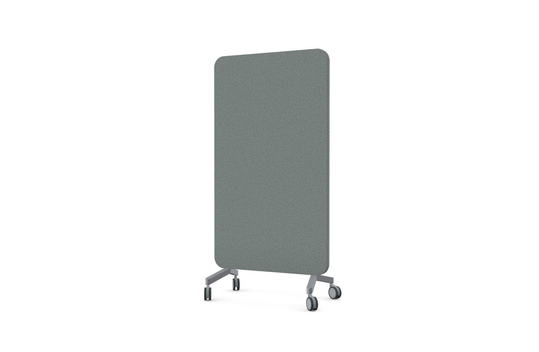 Mobil skærmvæg med magnetisk skriveflade i glas og stofbeklædt lydabsorberende bagside. Kræver stærke magneter beregnet til glastavler. Fødder og hjul bestilles separat.