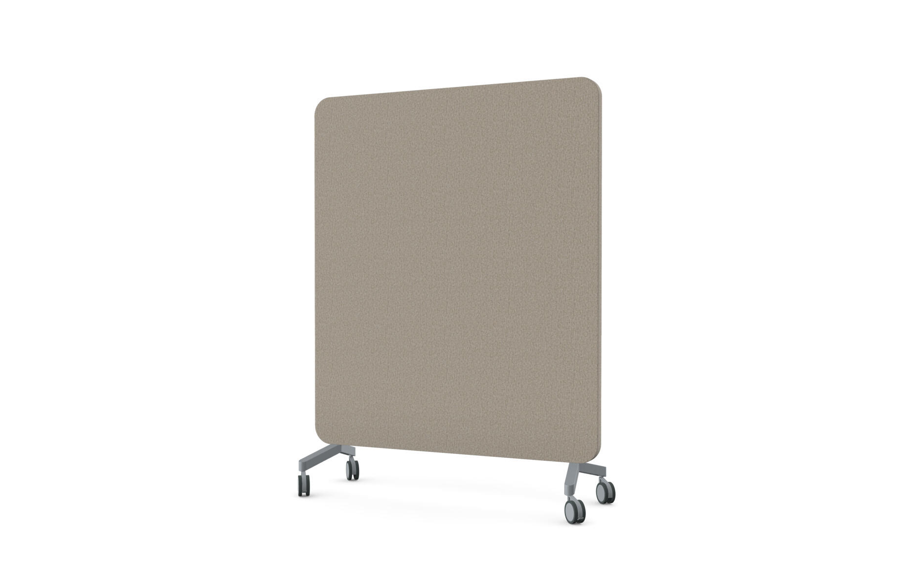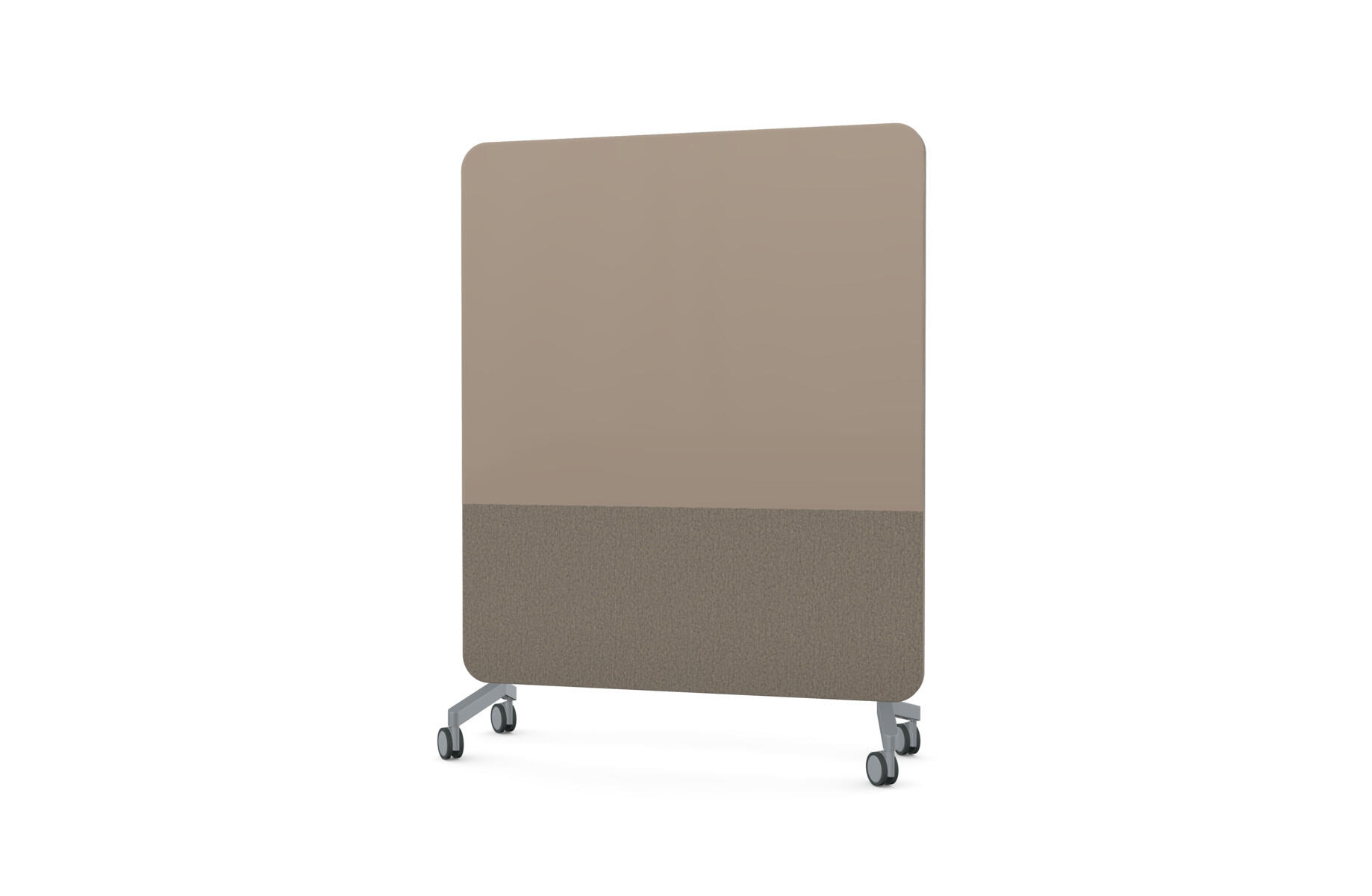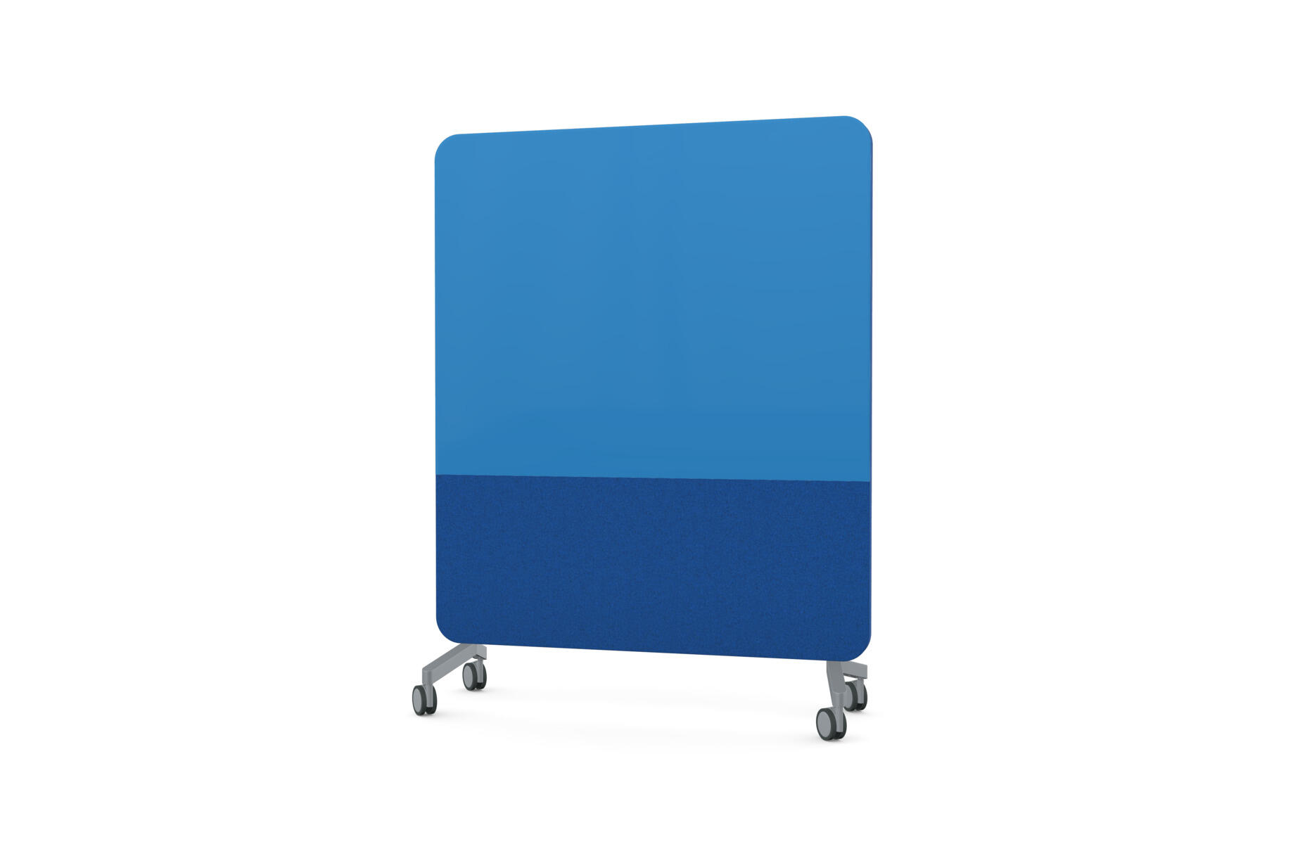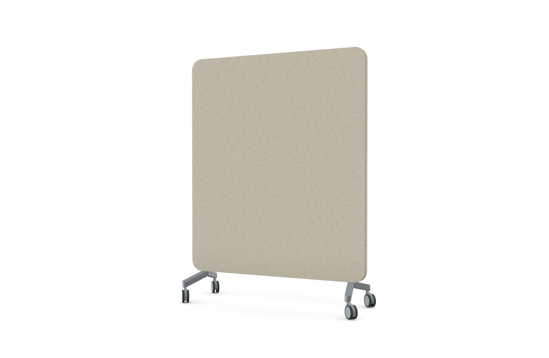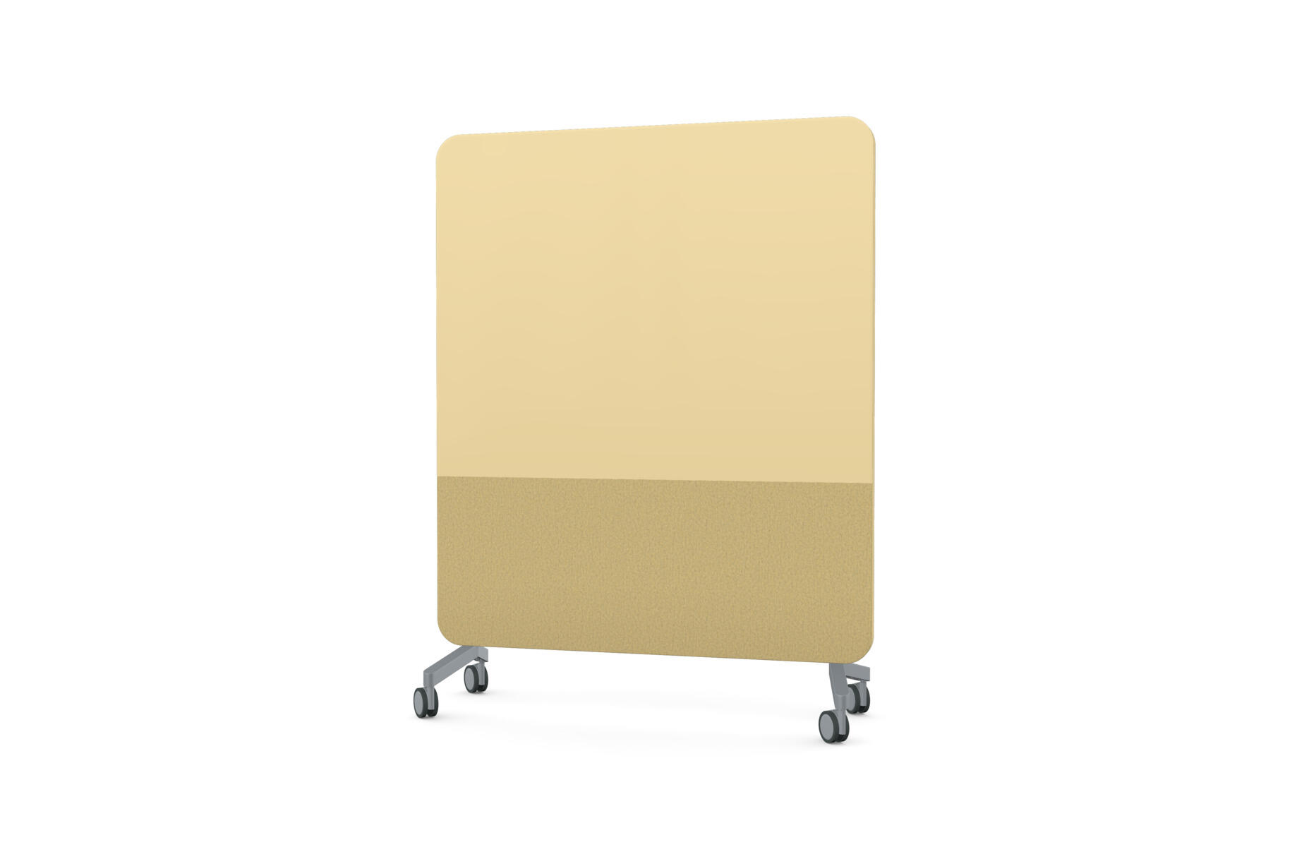 Mobil magnetbærende skrivetavle med fulddækkende glas på forsiden og stofbeklædt, nålefast bagside. Lydabsorberende fyld. Hærdet, optisk glas. Kræver særligt tilpassede, kraftigere magneter. Fås i flere udvalgte farvekombinationer. Fødder sælges separat.