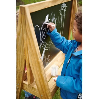 5 stk./pk. Farverige og vejrbestandige sorte tavler med køretøjer. Sæt dem fast på hegnet, og gør legepladsen til et sjovt og spændende område at udforske. Indeholder 2 biler, 2 fly og 1 lastbil. Mål på lastbil: 85x96 cm. Plastikstrips til ophængning medfølger. Kridt købes separat, se varenr. 46571. Fra 3 år.