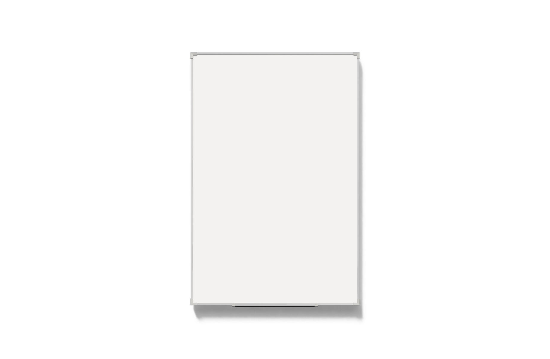 Skrivetavle med aluminiumramme som kan fås med forskellig overflade. Sort, blå og grøn er til kridt, hvid med glasemalje er til whiteboardtuscher. Grå plasthjørner. Tuschholder og beslag til vægmontering medfølger. Magnetisk.