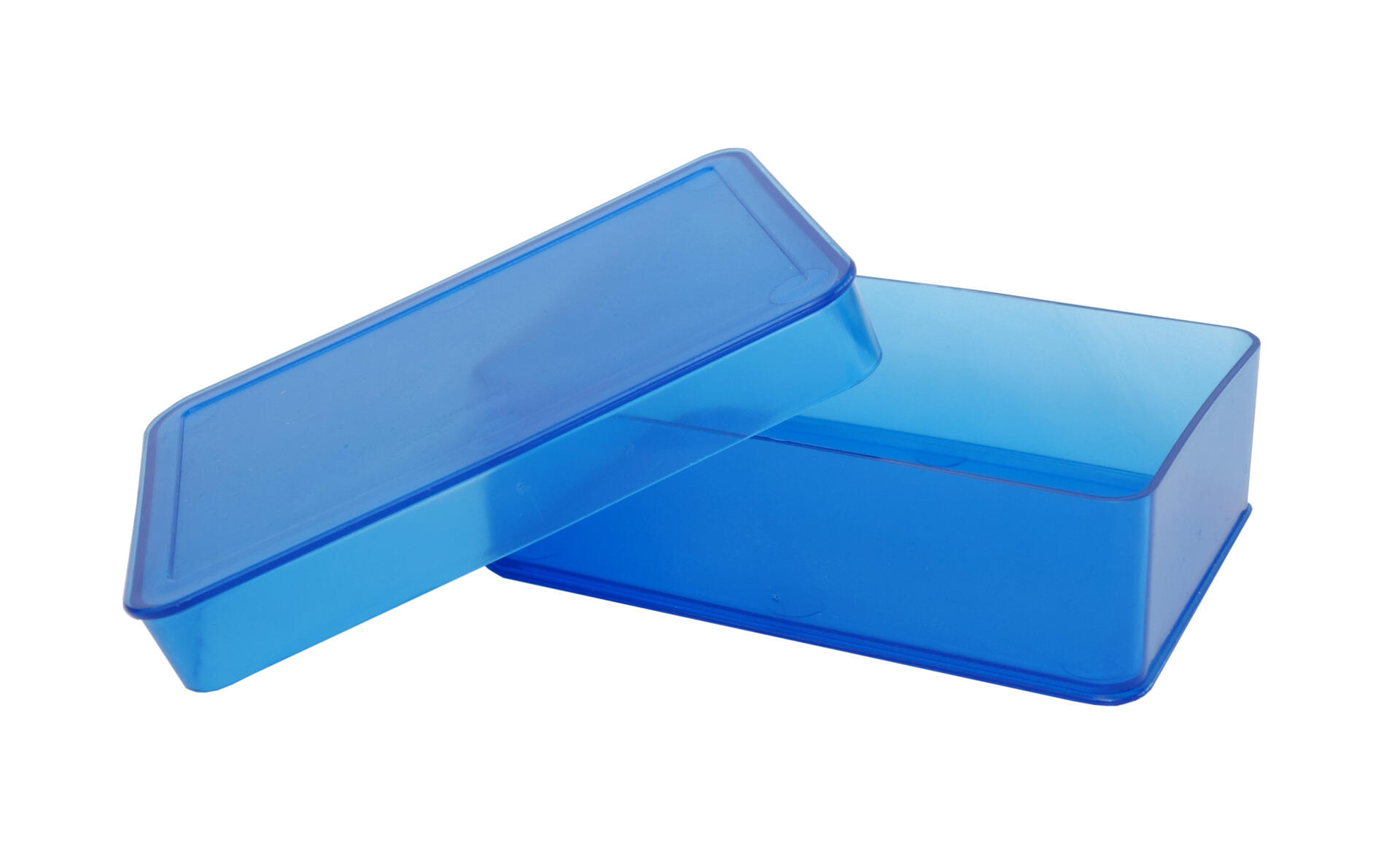 Gennemsigtig kasse i solid plast. Nem at rengøre i hånden eller opvaskemaskinen. Kan stables både i og på hinanden. Godkendt til mad. Mål: B14xD20xH7,5 cm. Rummer 1,5 l.