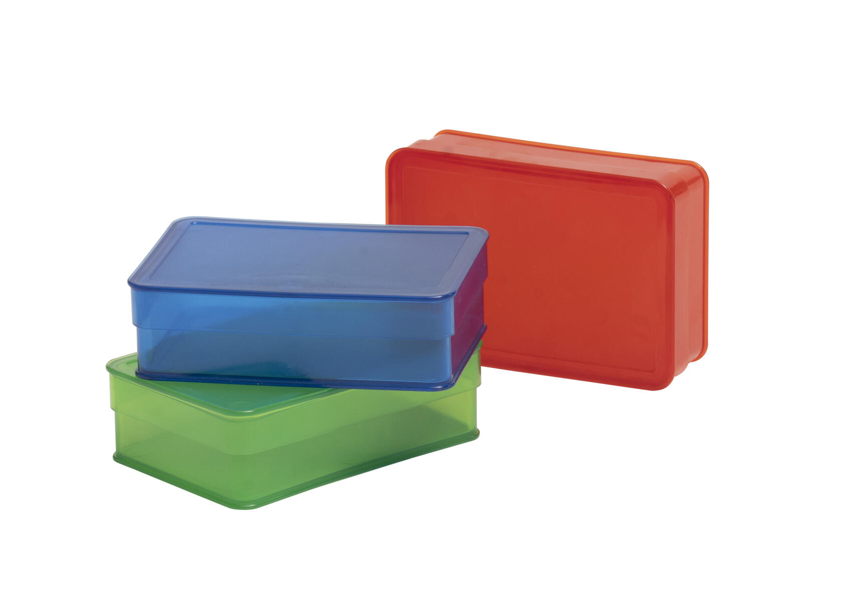 Plastboks med 3 niveauer. Låg med håndtag og mindre håndtag på siderne. Til sortering og opbevaring af bl.a. rørperler. Hvert niveau indeholder 6 rum, i alt er der 18 rum. Rummer ca. 6.000 rørperler i midi-størrelse. Af PP-plast. Mål: 13x16,5x15,5 cm.