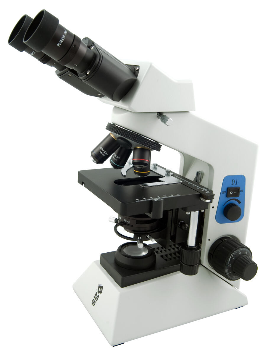 Binokulært mikroskop med højopløsningsobjektiver og to bredfeltsokularer (WF) med planoptik. Stabiliteten garanteres af det solide design af stativ og base. Stor bundplade og integreret bevægelig prøveholder. Arbejdsområdet er 14x15 cm og tillader nemt to dias samtidig. Integreret X-Y præparatholder. Abbe-kondensor med en rille til indsættelse af forskellige tilbehør såsom mørkefelts- eller faskontrastregulatorer. Kondensoren kan justeres i højden. Okularer og objektiver er belagt med en antisvamp-belægning. Med LED-belysning, som kan sammenlignes med en 30 W halogenlyskilde.