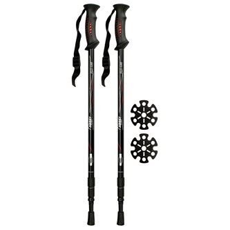 3 sæt/pk. Gåturen bliver mere effektiv med stave, og arme, skuldre, bryst og ben får god træning. Aluminiumsstavene er tredelt og har støddæmpning. Justerbar højde og med en god håndledsrem, der giver ekstra støtte. Gummibåndet er blødt og behageligt at holde på. Højde 66-135 cm.
