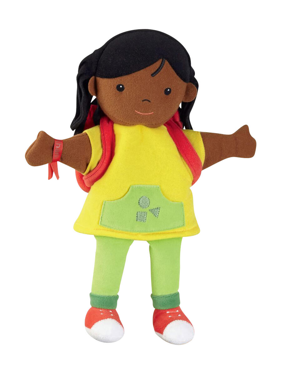 Sød hånddukke til sproglige og kommunikative aktiviteter. Hånddukken har en aftagelig rygsæk med plads til små overraskelser. Længde 32 cm.