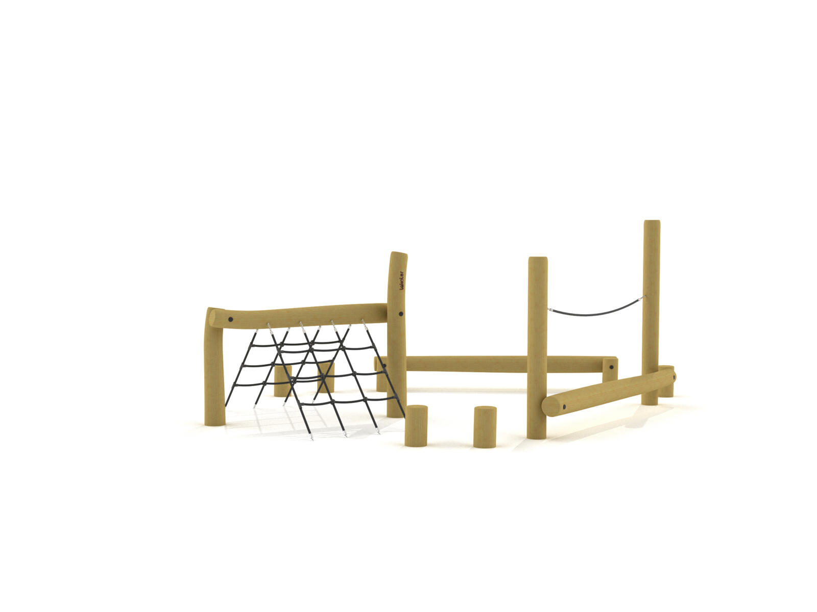 Robinie har et blødt og naturligt udtryk og falder smukt ind i uderummet. Når børnene bevæger sig gennem forhindringsbanen, styrkes deres balance, koordination og kropsbevidsthed. Balancestubbene snor sig hen over et dobbelt klatrenet, en balancebom og en balancebom med reb. Fremstillet af FSC-certificeret robinietræ – en træsort med høj modstandsdygtighed over for vejrpåvirkning. Træet absorberer kun minimalt med vand og er kendt for sin ekstremt lange holdbarhed. Monteres i henhold til montagevejledningen.