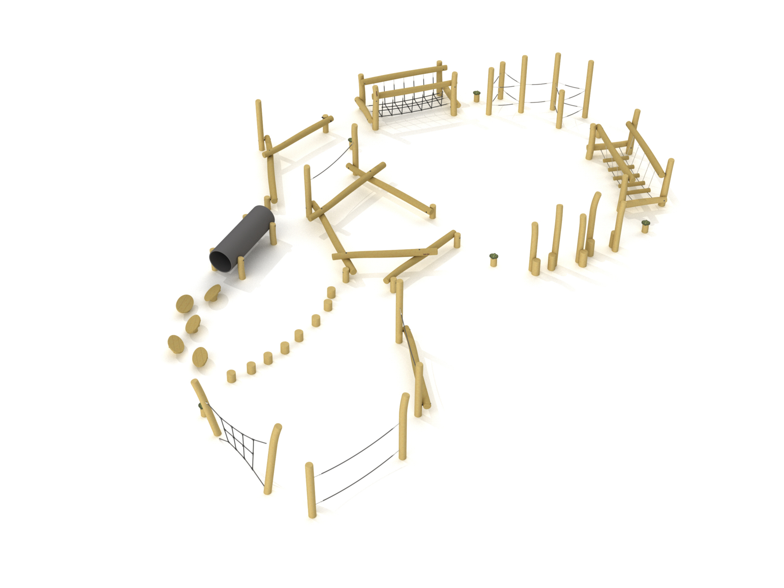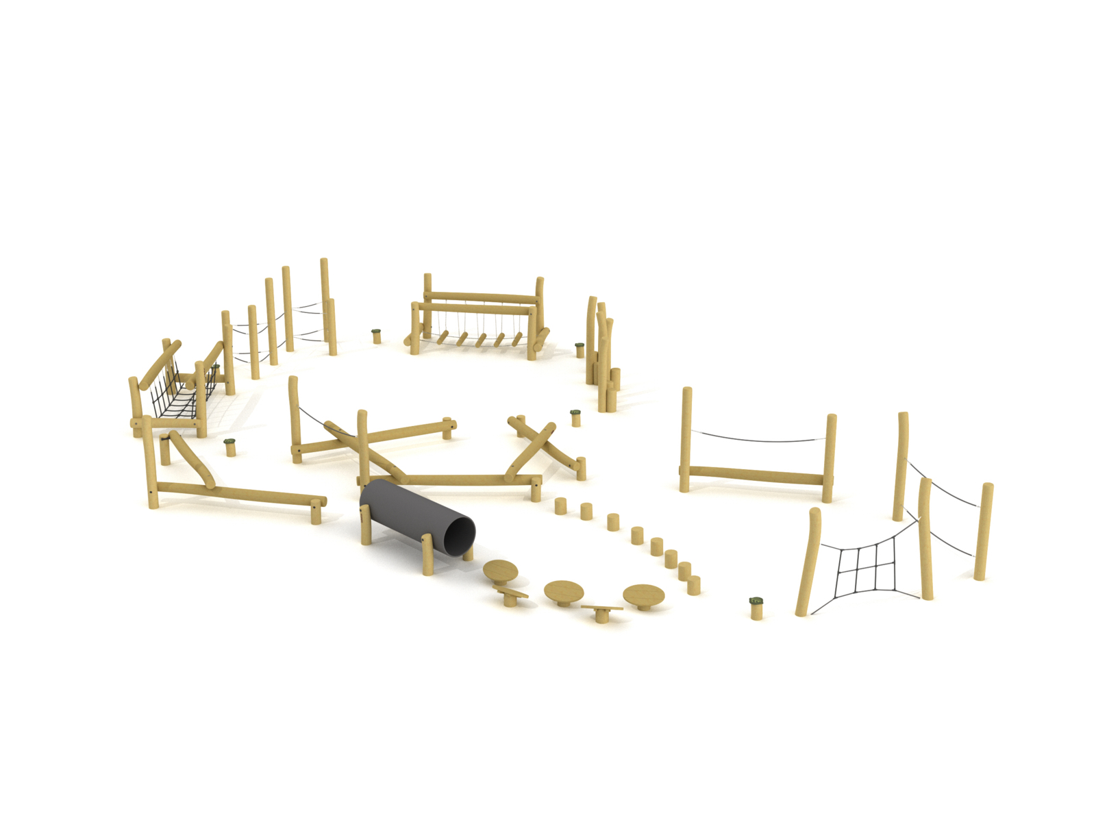Robinie har et blødt og naturligt udtryk og falder smukt ind i uderummet. Når børnene bevæger sig gennem den store forhindringsbane, styrkes deres balance, koordination og kropsbevidsthed. Balancestubbene snor sig gennem en balanceskov, klatrenet, en fjedrende balancebom, forskellige kombinationer af balancebomme, en rebskov, en klatrebro, en svajende stammebro, balancebomme med reb og skråtstillede balanceelementer. Fremstillet af FSC-certificeret robinietræ – en træsort med høj modstandsdygtighed over for vejrpåvirkning. Træet absorberer kun minimalt med vand og er kendt for sin ekstremt lange holdbarhed. Monteres i henhold til montagevejledningen.