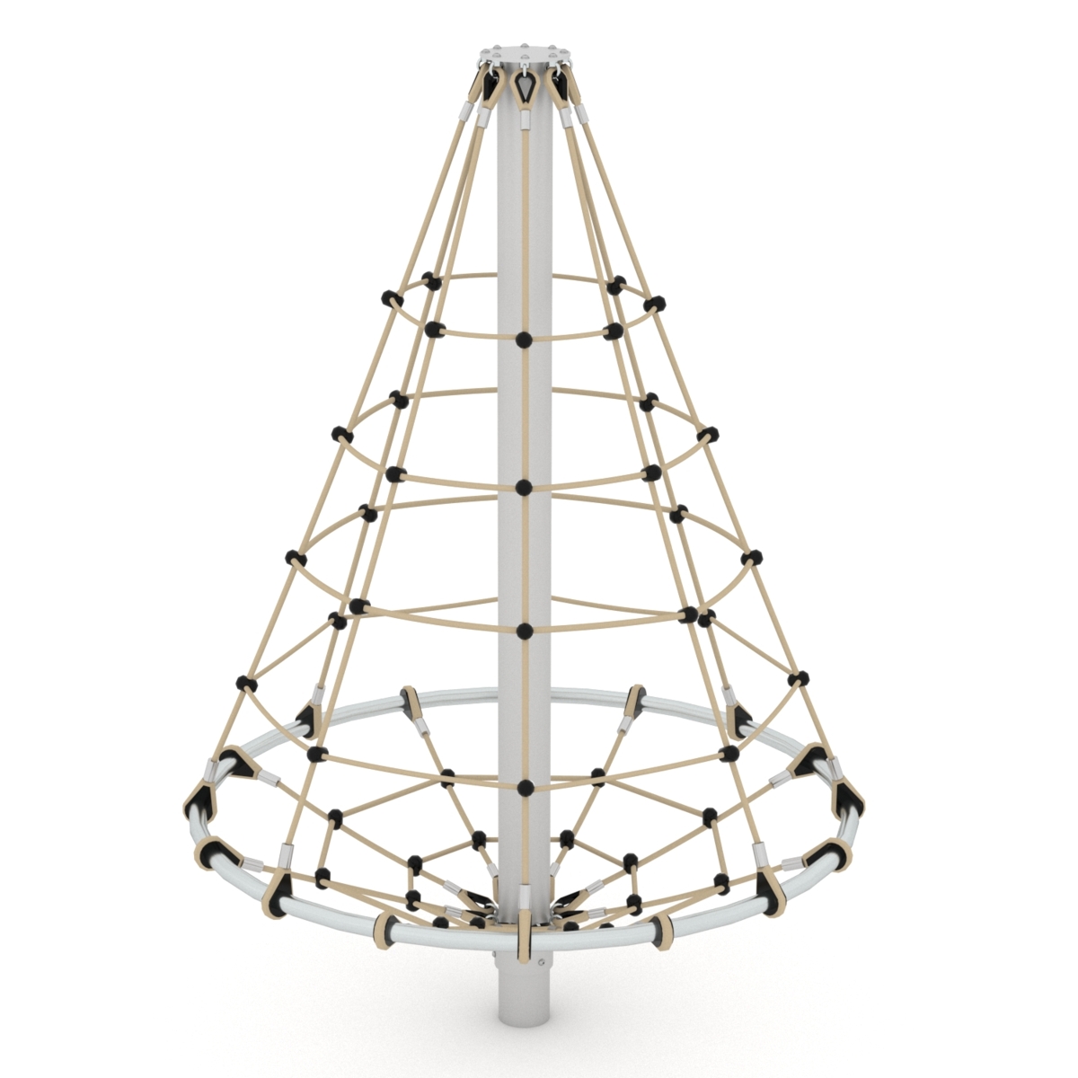 4,5 m. høj klatrepyramide i galvaniseret og pulverbelagt stål. Pyramiden kan aktivere op til 44 børn på en gang med mulighed for at være aktiv samt, at kunne slappe af på de inderste flettet reb. Ved installation skal den medfølgende manual altid følges. Den nyeste version kan rekvireres på forespørgsel. K29 forankring medfølger som standard.