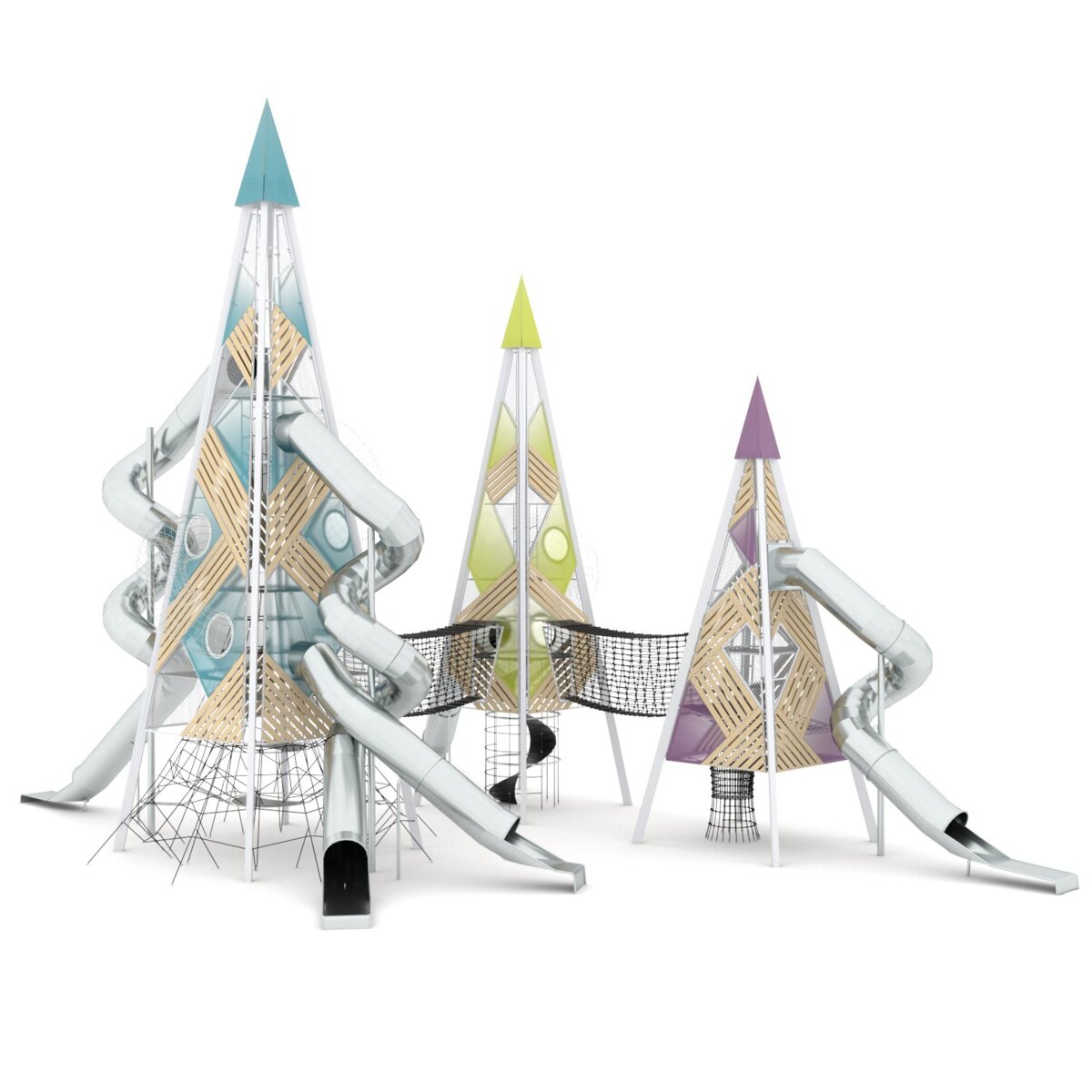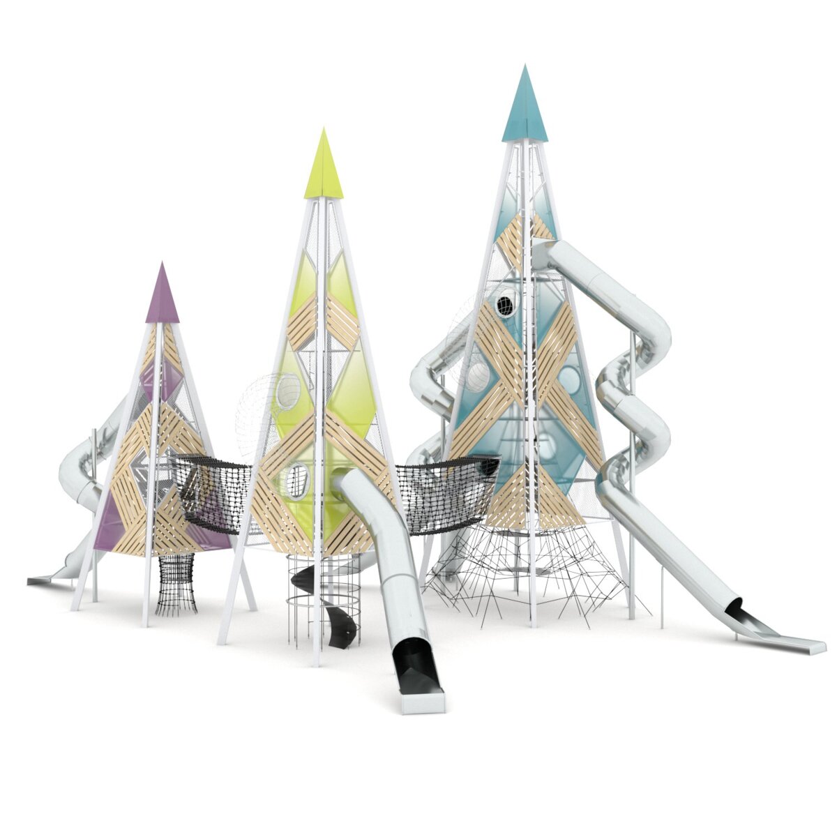 At klatre højt i tårne, der næsten når op til himlen, er både spændende og udfordrende. Ved at klatre udvikler børn deres motorik, koordination, balance og kropsbevidsthed. MAXX er et modulært system af højeste kvalitet. Denne gigantiske model består af 3 tårne i forskellige højder, alle med forskellige klatreudfordringer, hængebro mellem tårnene og 5 fartfyldte tunnelrutsjebaner, hvoraf 3 er spiralformede. Modulerne er lavet af varmgalvaniseret stål med indslag af robinia og UV-bestandig farvet polykarbonat. Ved installation skal den medfølgende manual altid følges. Den nyeste version kan rekvireres på forespørgsel. K18 forankring medfølger som standard.
